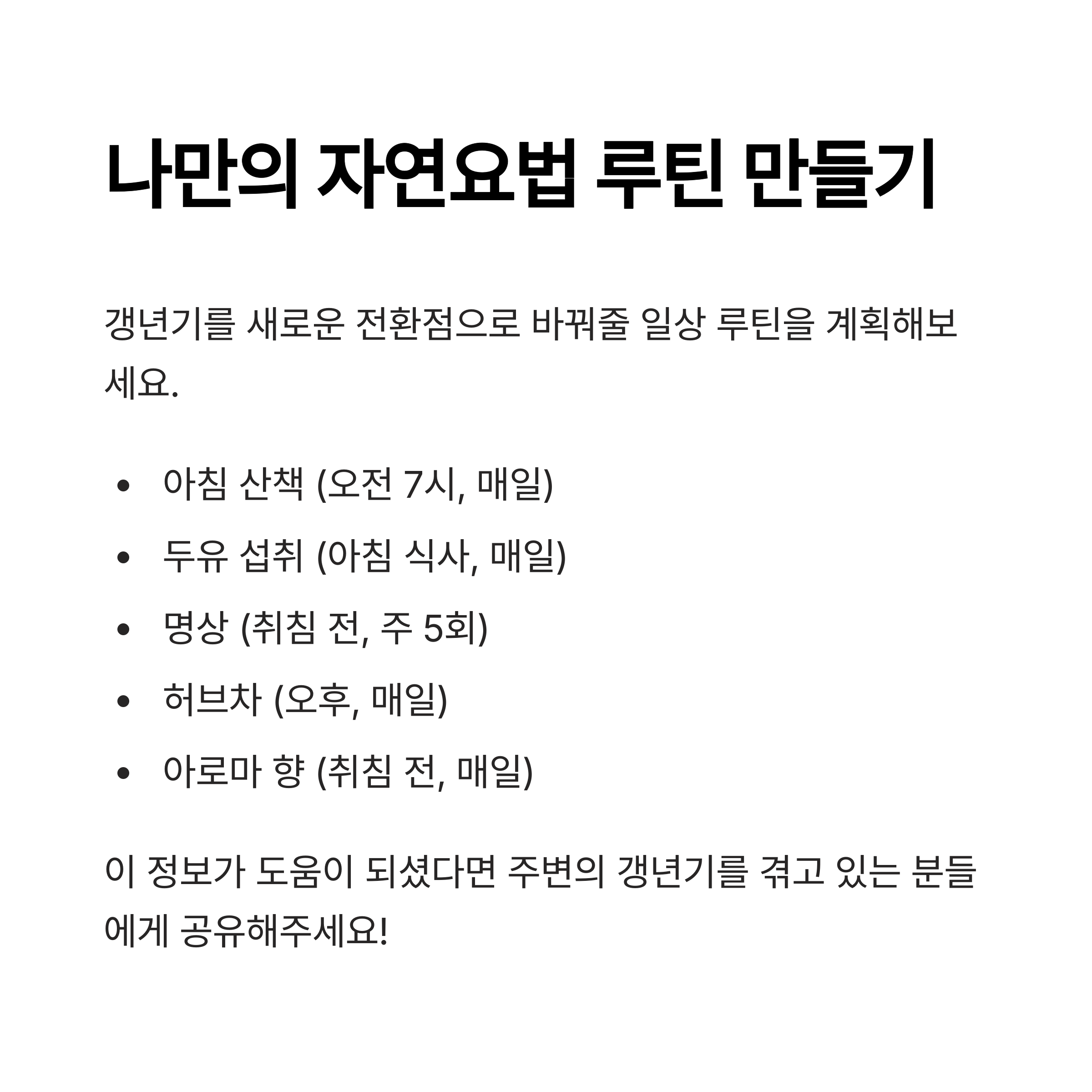 꾸준한 루틴이 갱년기를 새로운 전환점으로 바꿔줍니다.