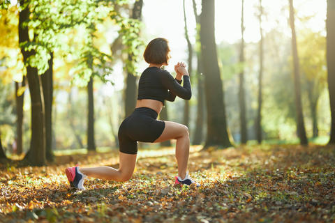 무릎이 발끝을 넘지 않도록 주의하고, 복부에 힘을 주는 것이 핵심입니다.