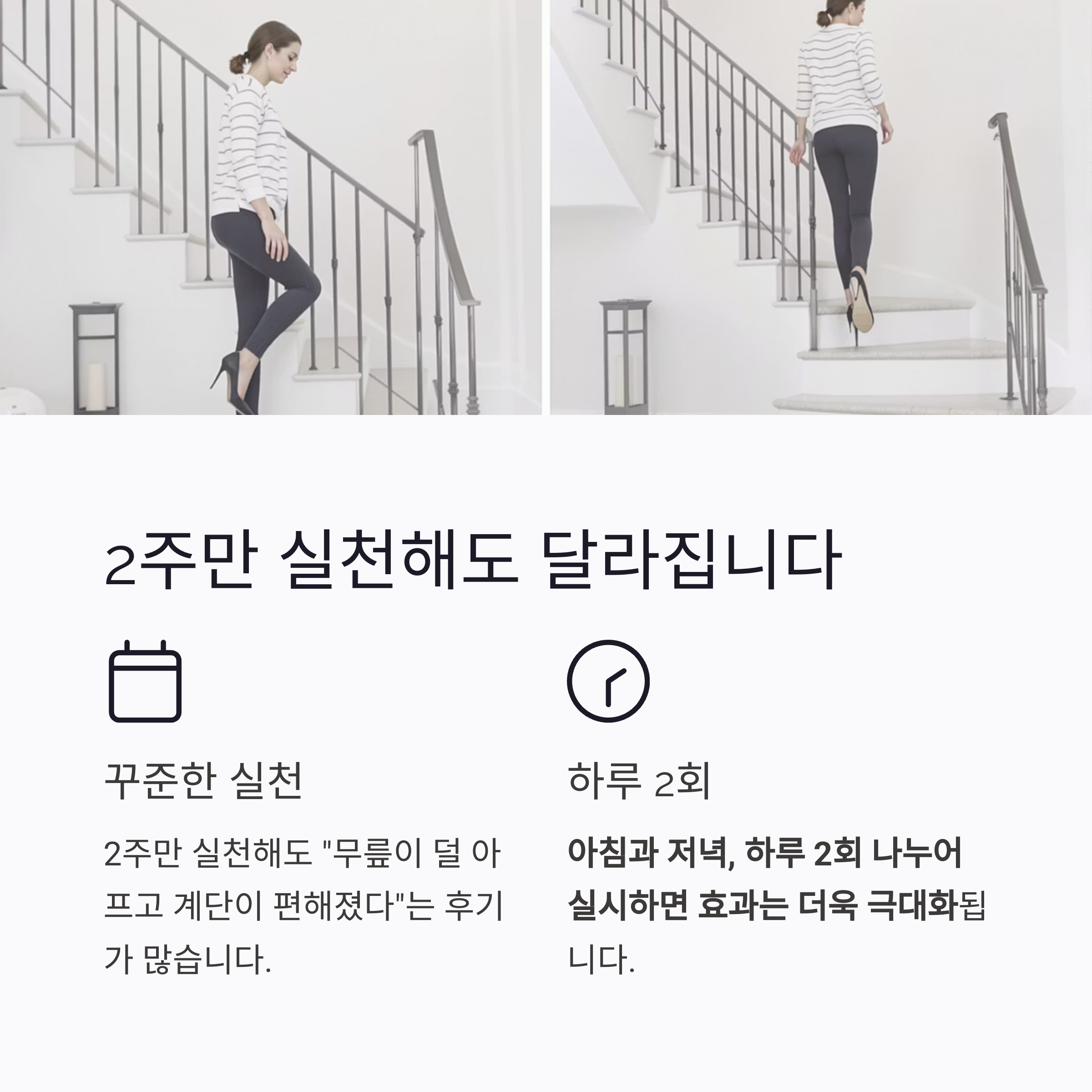 꾸준히 2주만 실천해도 "무릎이 덜 아프고 계단이 편해졌다"는 후기들이 많습니다.