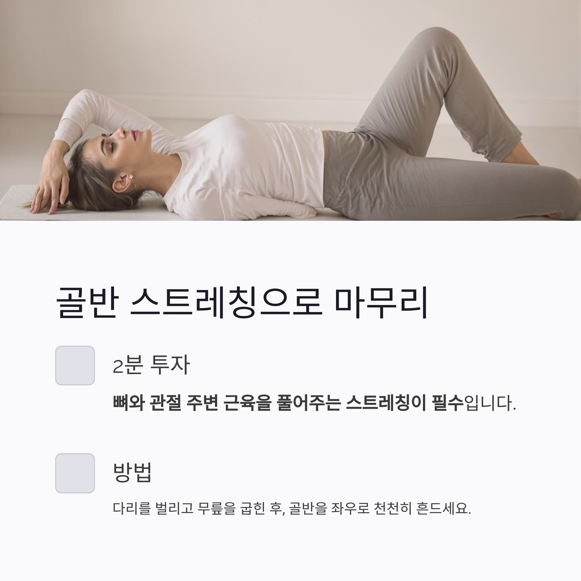 | 골반 스트레칭 | 2분 | 골반, 허리 |
