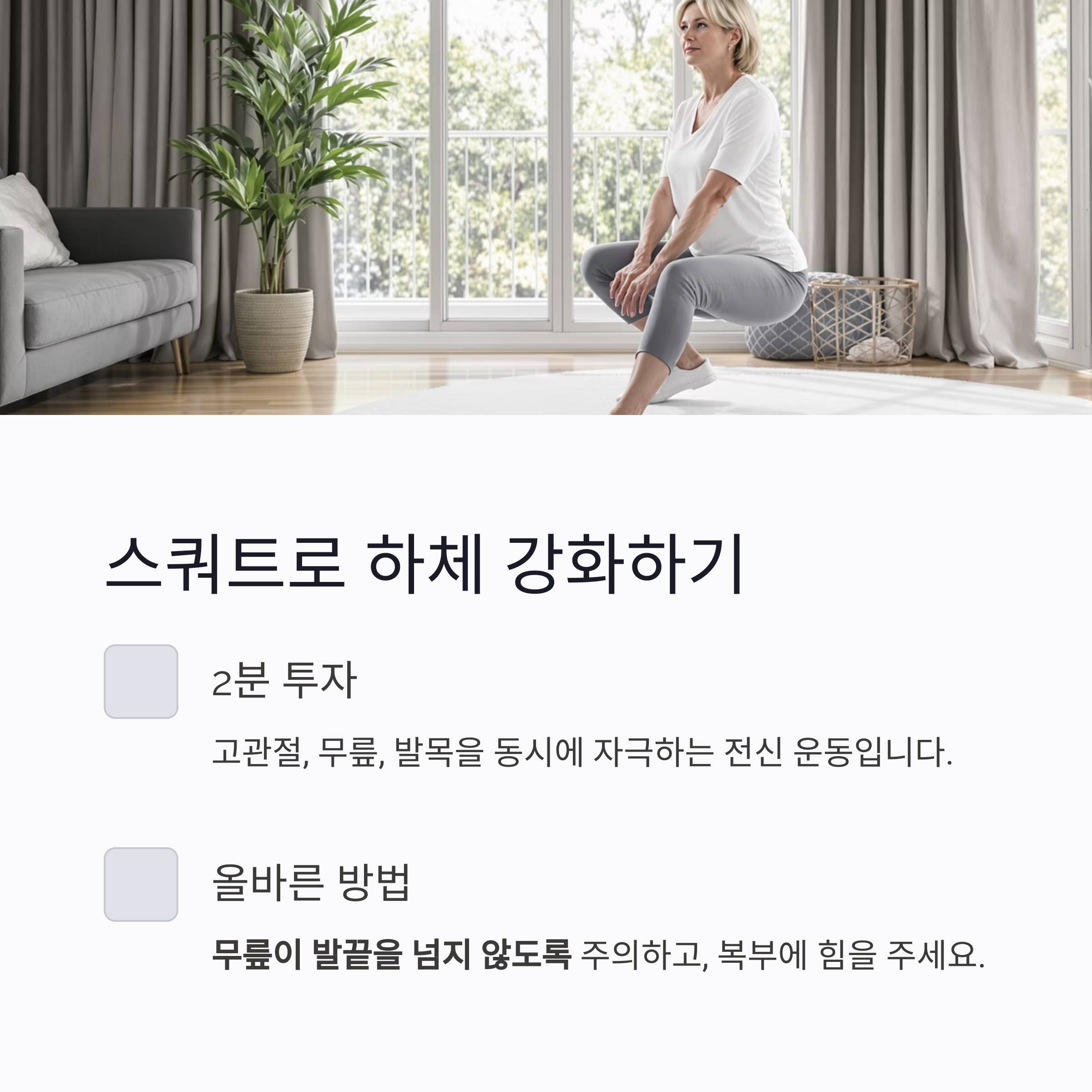 스쿼트로 하체 강화 2분