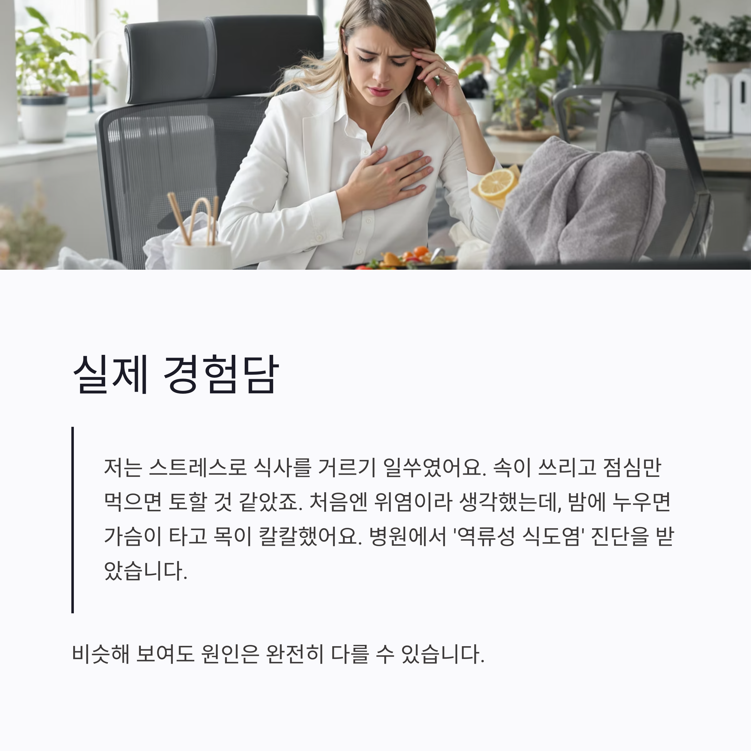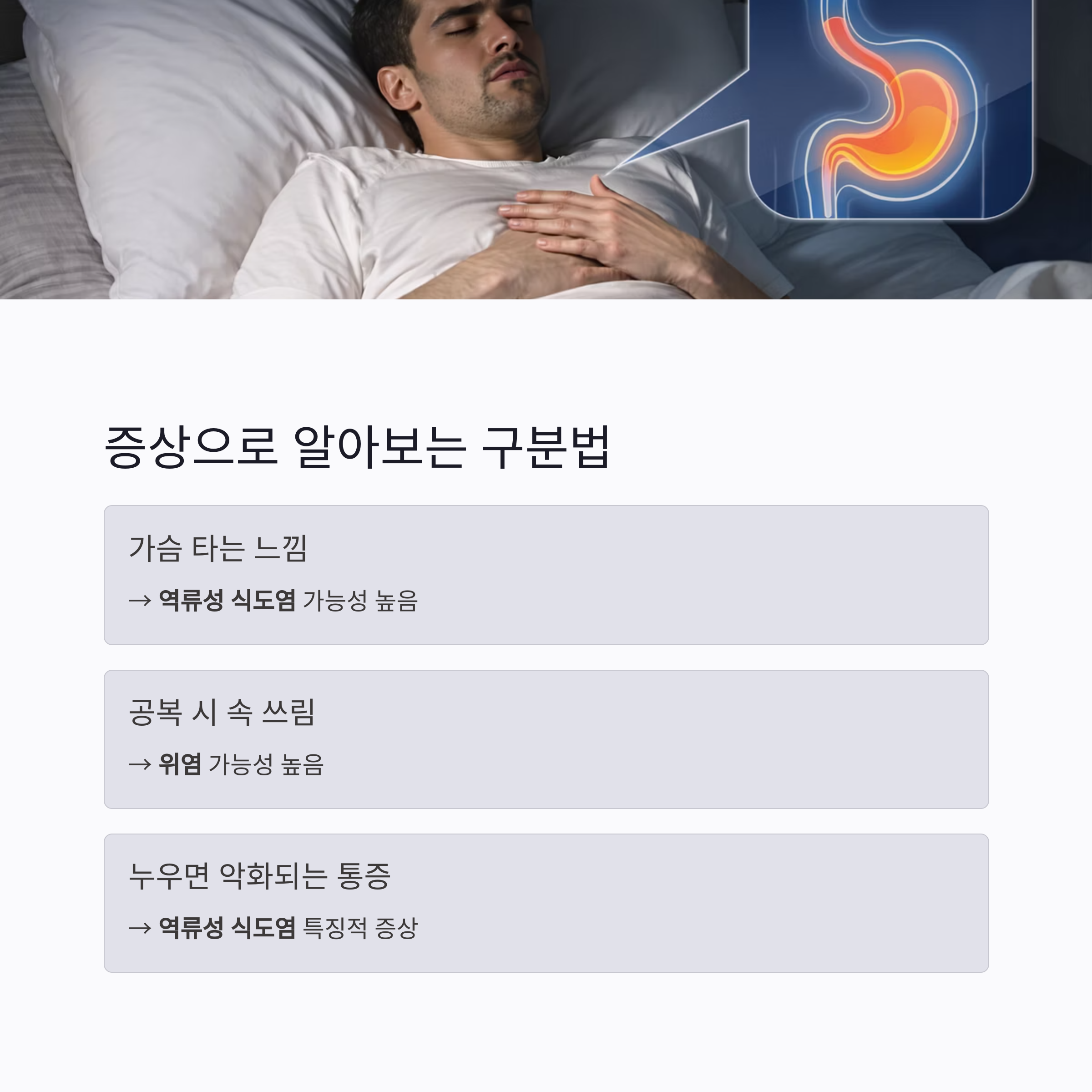 처음엔 위염이라고 생각했지만, 밤에 누우면 가슴이 타는 느낌이 나고