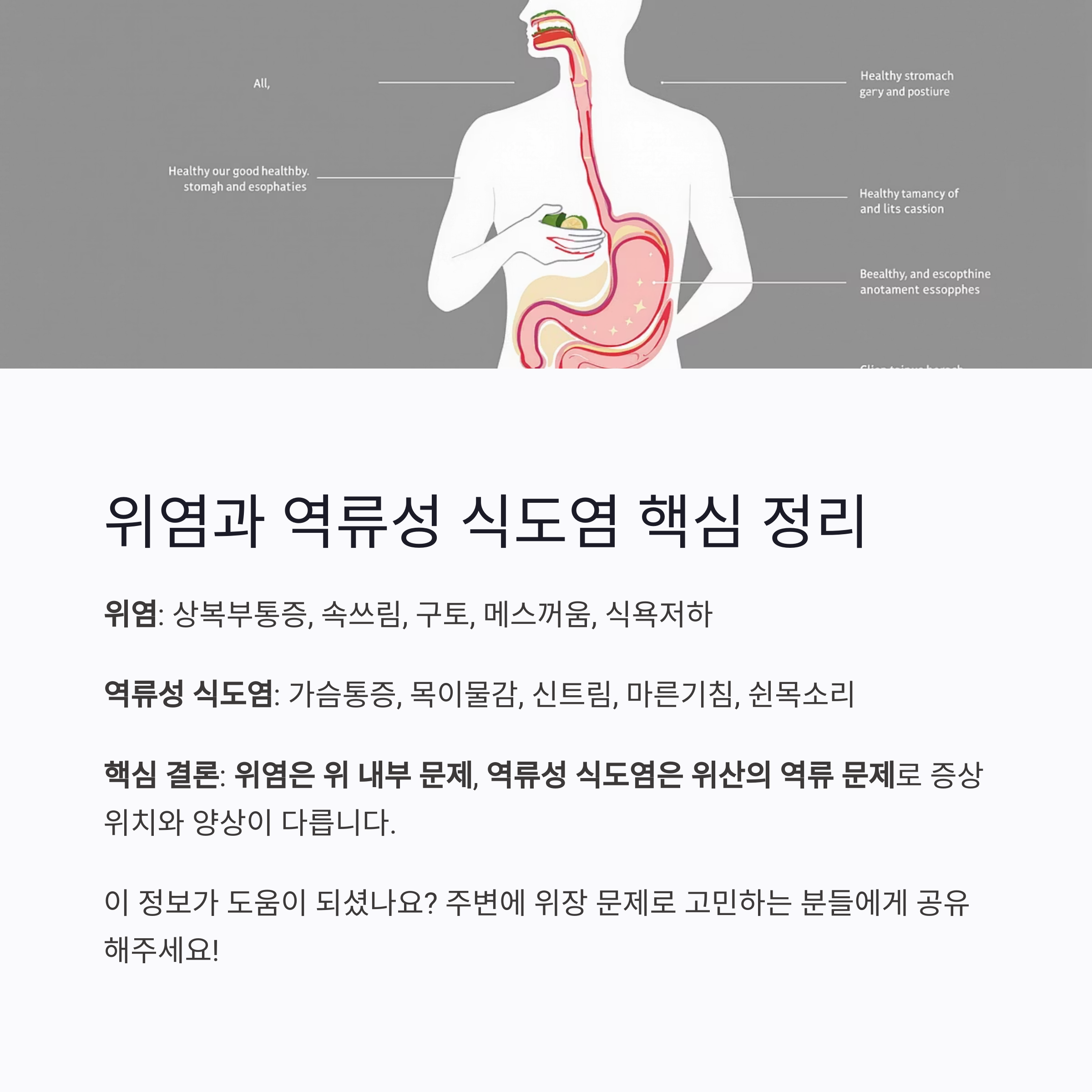 핵심 결론: 위염은 위 내부 문제, 역류성 식도염은 위산의 역류 문제로