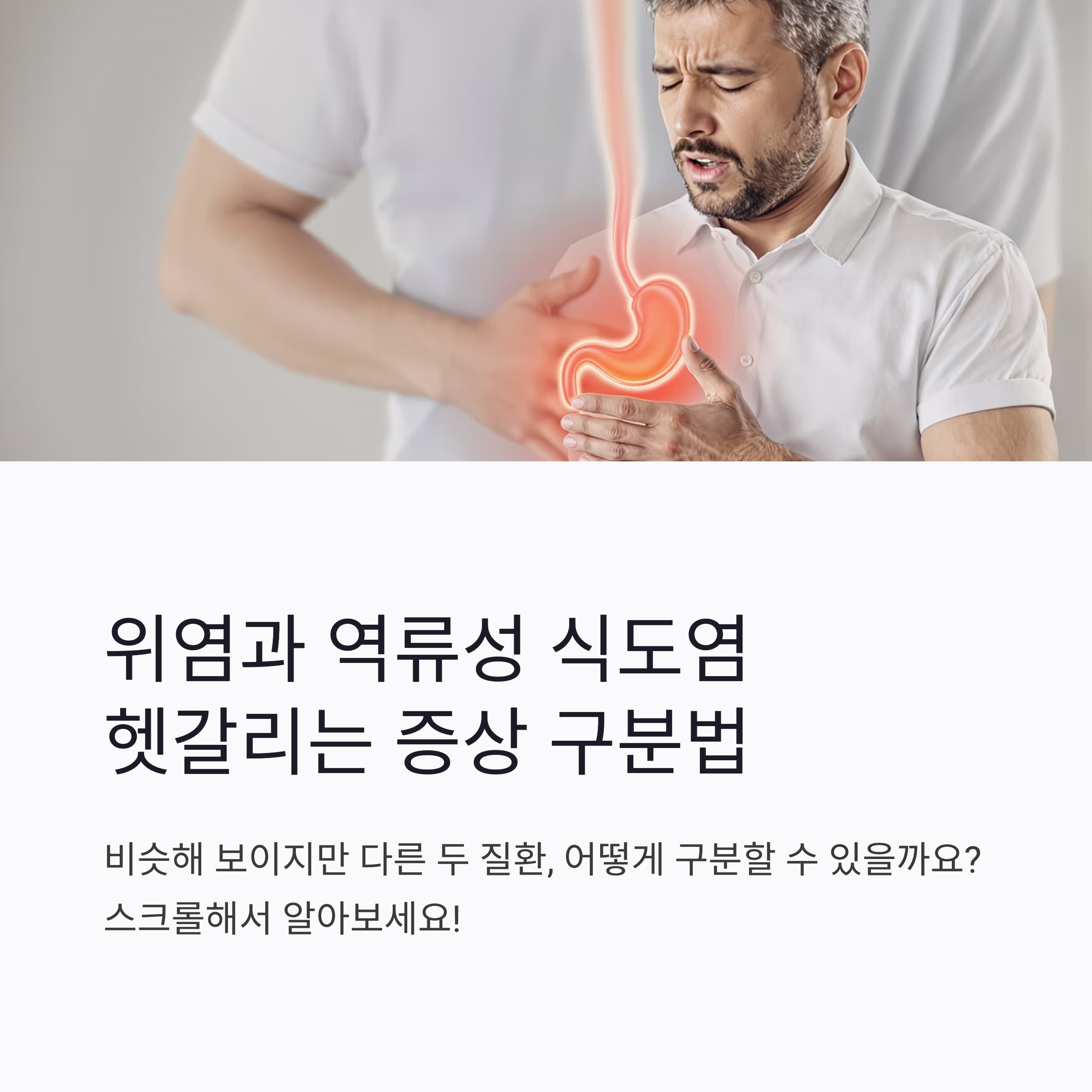 위장 질환 중 가장 흔한 두 가지인 위염과 역류성 식도염은 비슷한 듯 다른 증상을 보입니다.