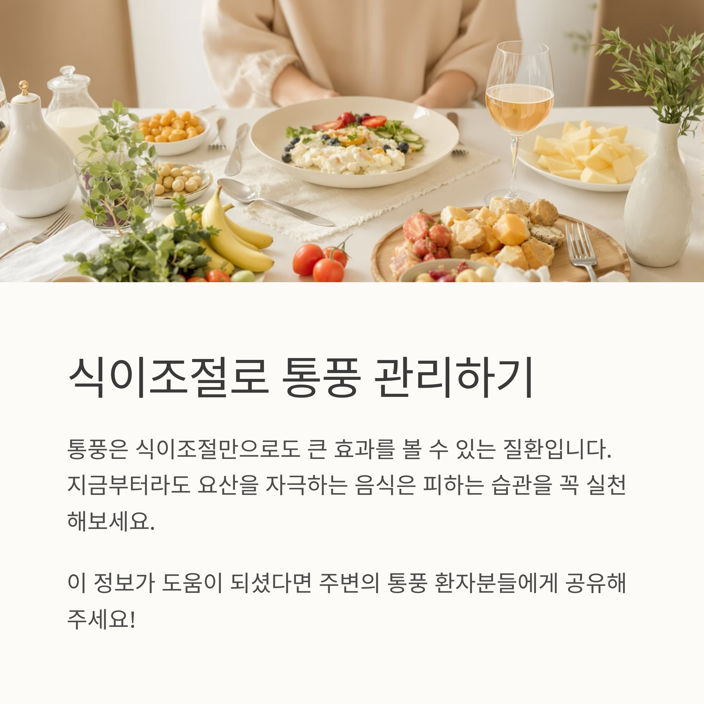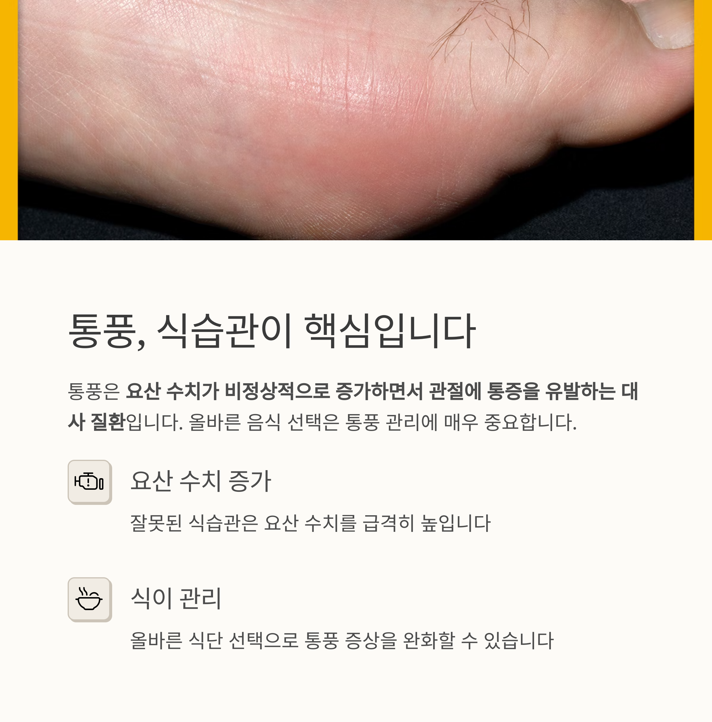 중요: 통풍은 식이조절만으로도 큰 효과를 볼 수 있는 질환입니다.