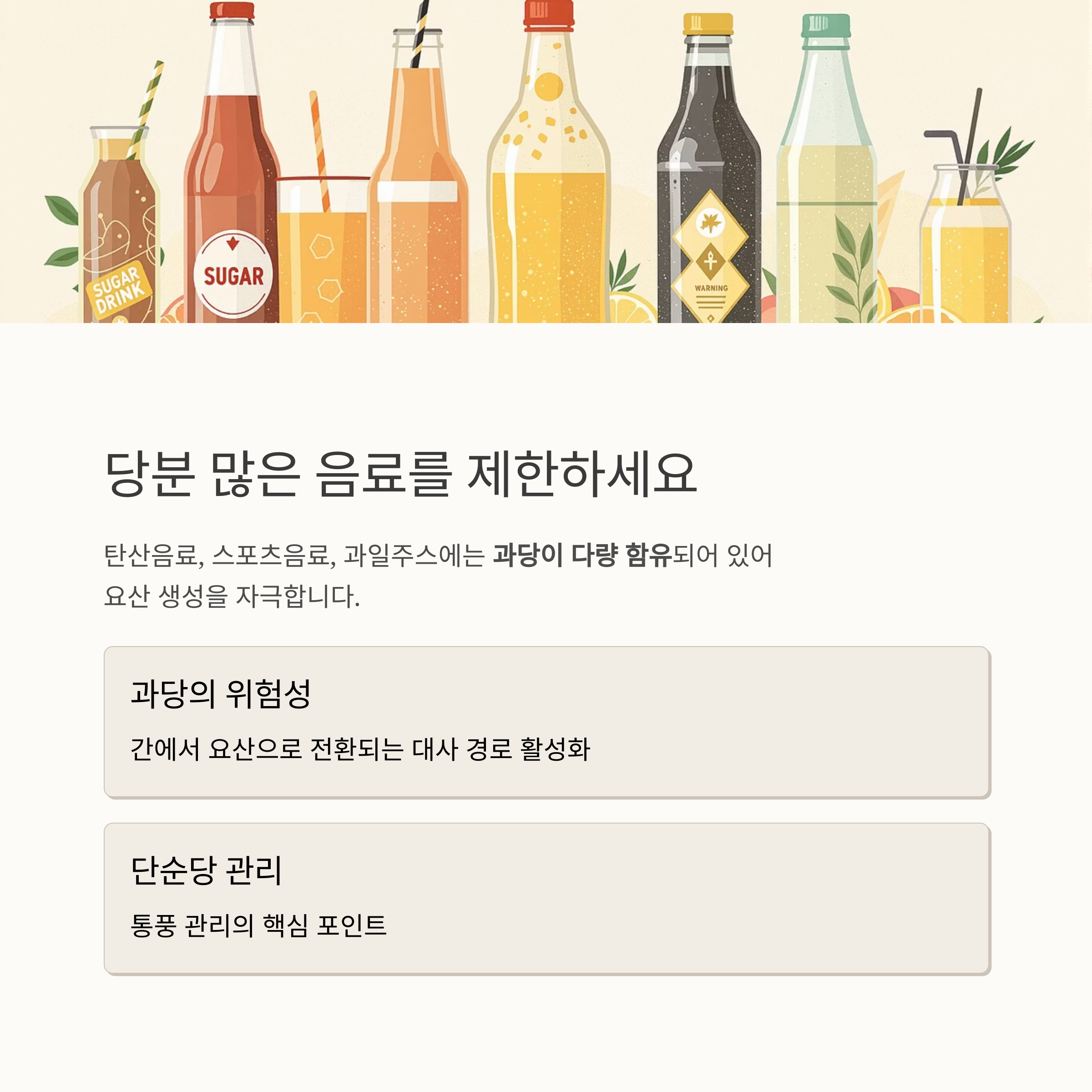 단순당 섭취도 통풍 관리의 핵심 포인트입니다.