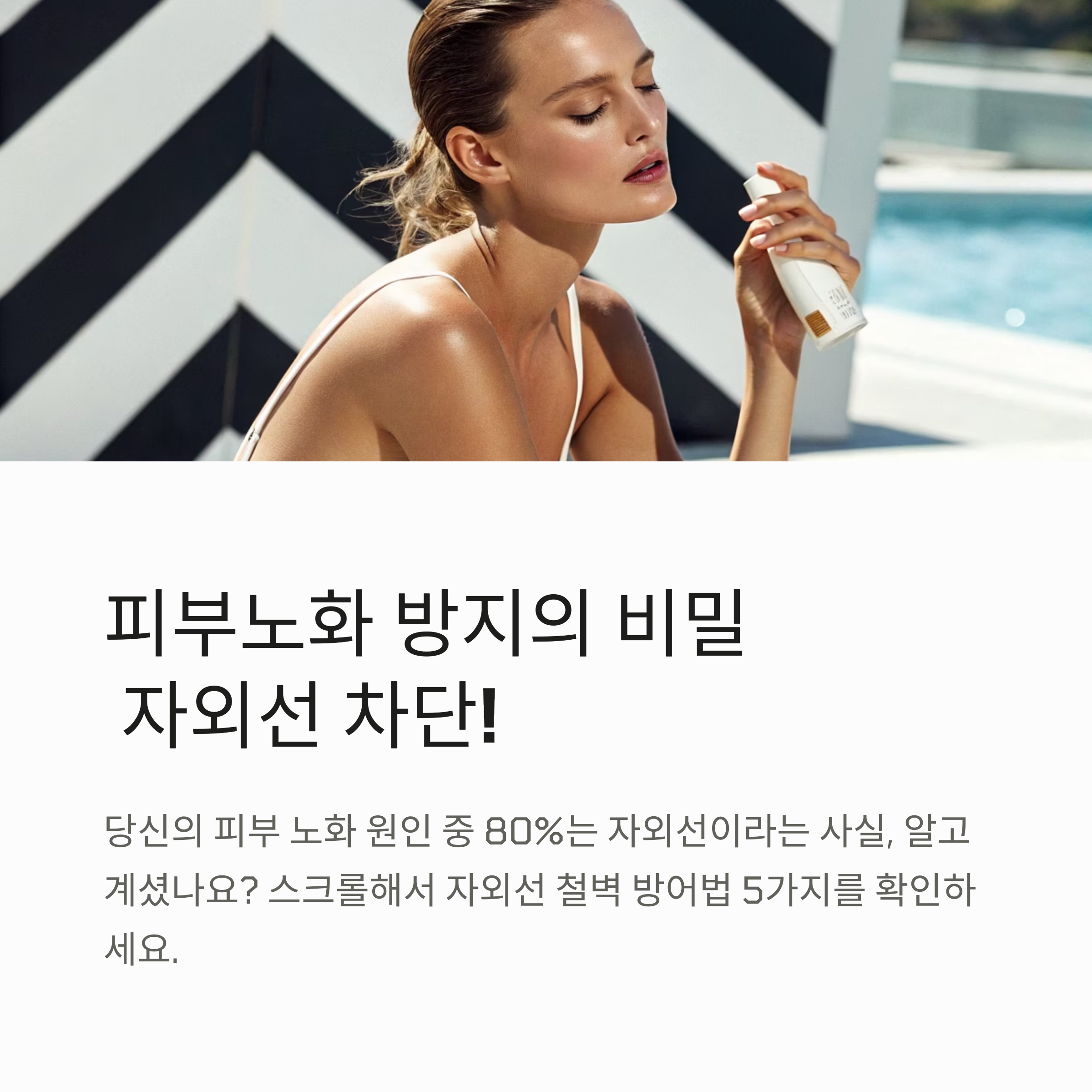 따라서 자외선 차단은 단순한 뷰티 루틴이 아니라 노화 방지의 필수 전략입니다.