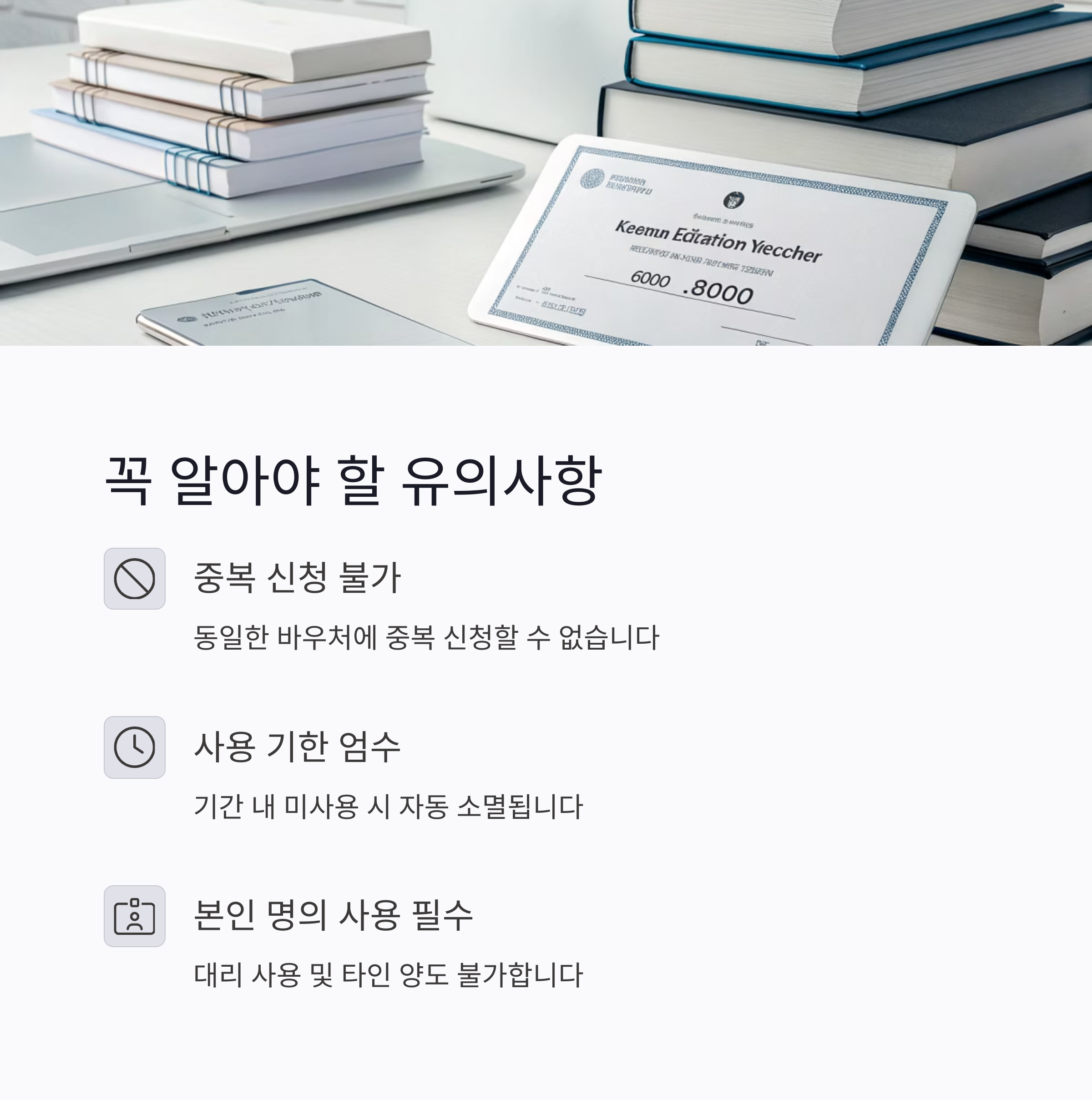 - 중복 신청 불가: 동일한 바우처에 중복 신청할 수 없습니다.