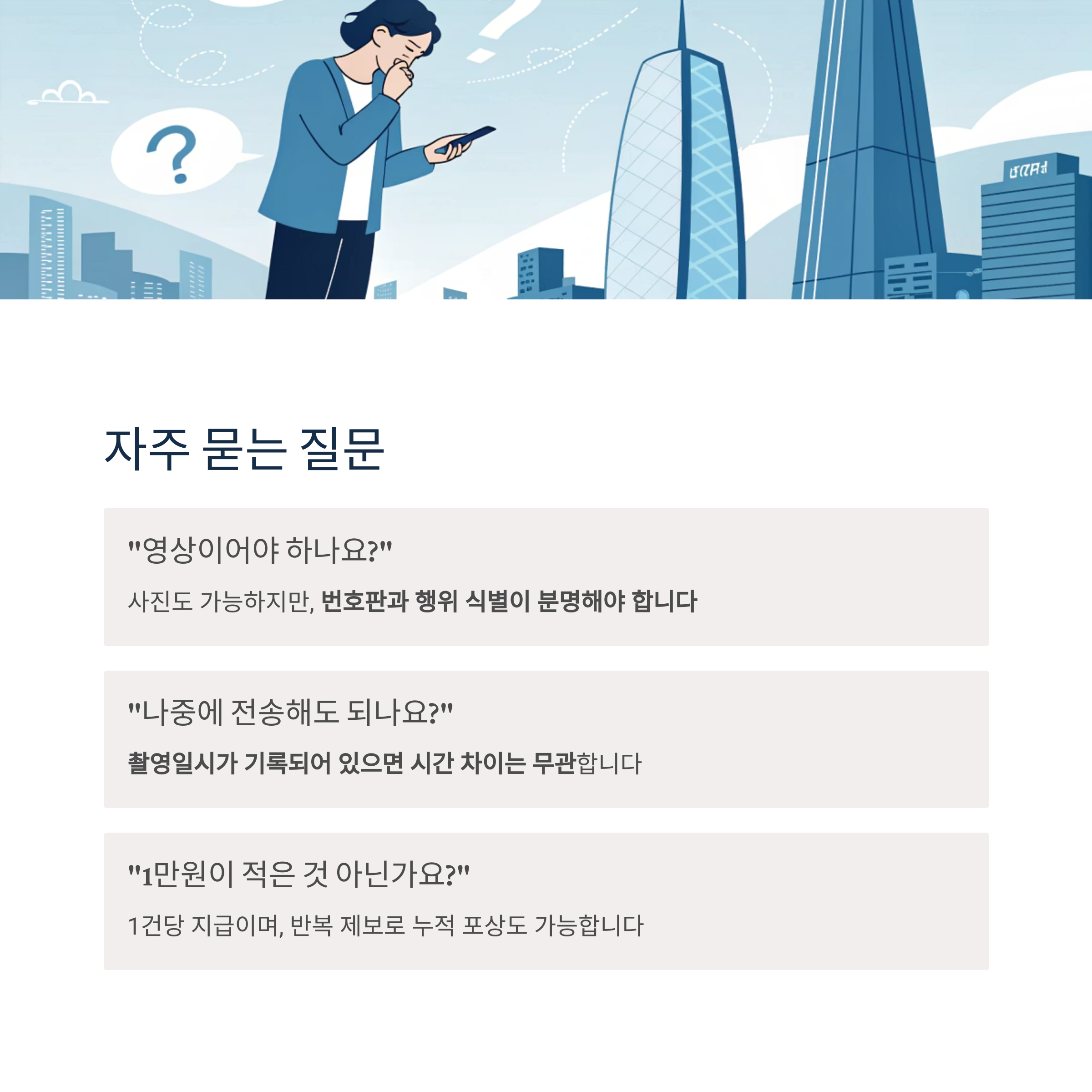 → 사진도 가능하지만, 번호판과 행위 식별이 분명해야 합니다