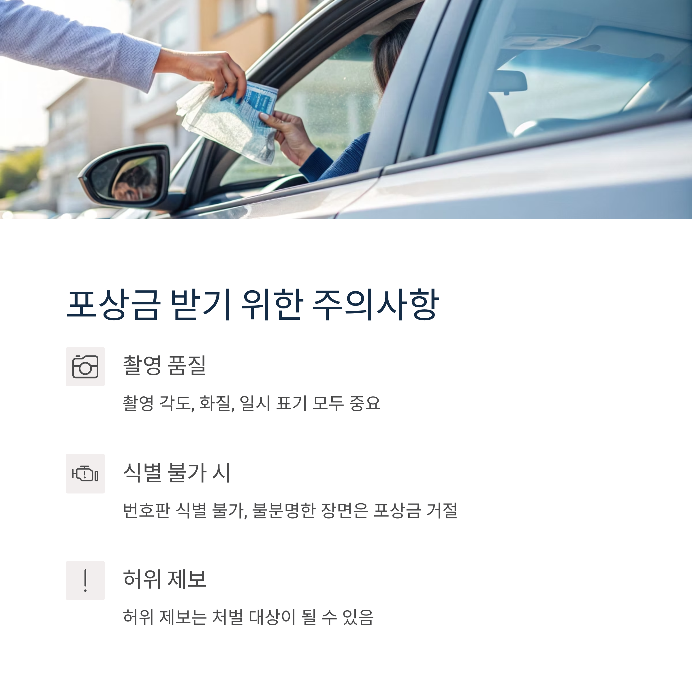 - 번호판 식별 불가, 불분명한 장면은 포상금 지급이 거절됩니다