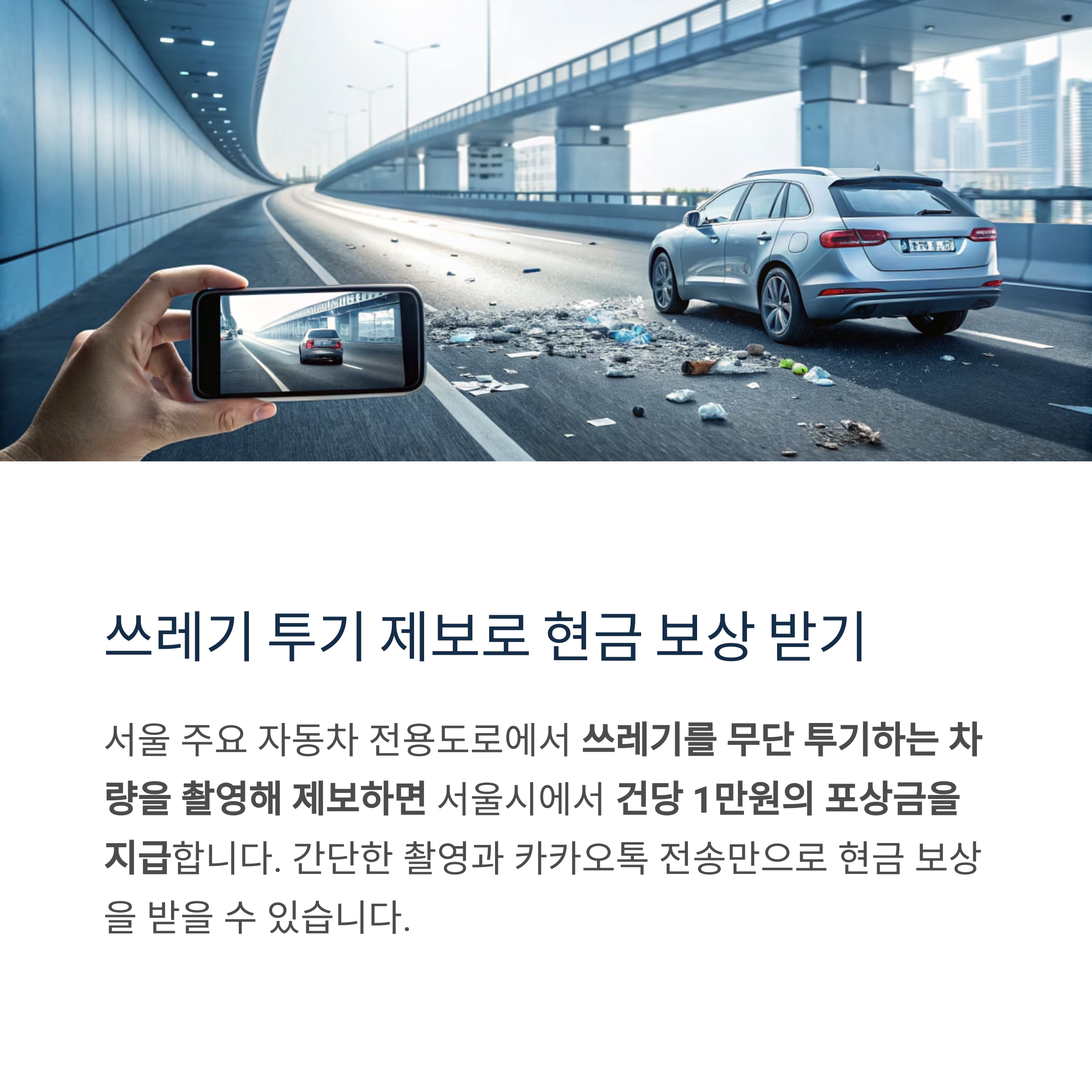 서울 도심에서 쓰레기 투기 차량 제보하고 현금 1만원 받는 꿀팁!
