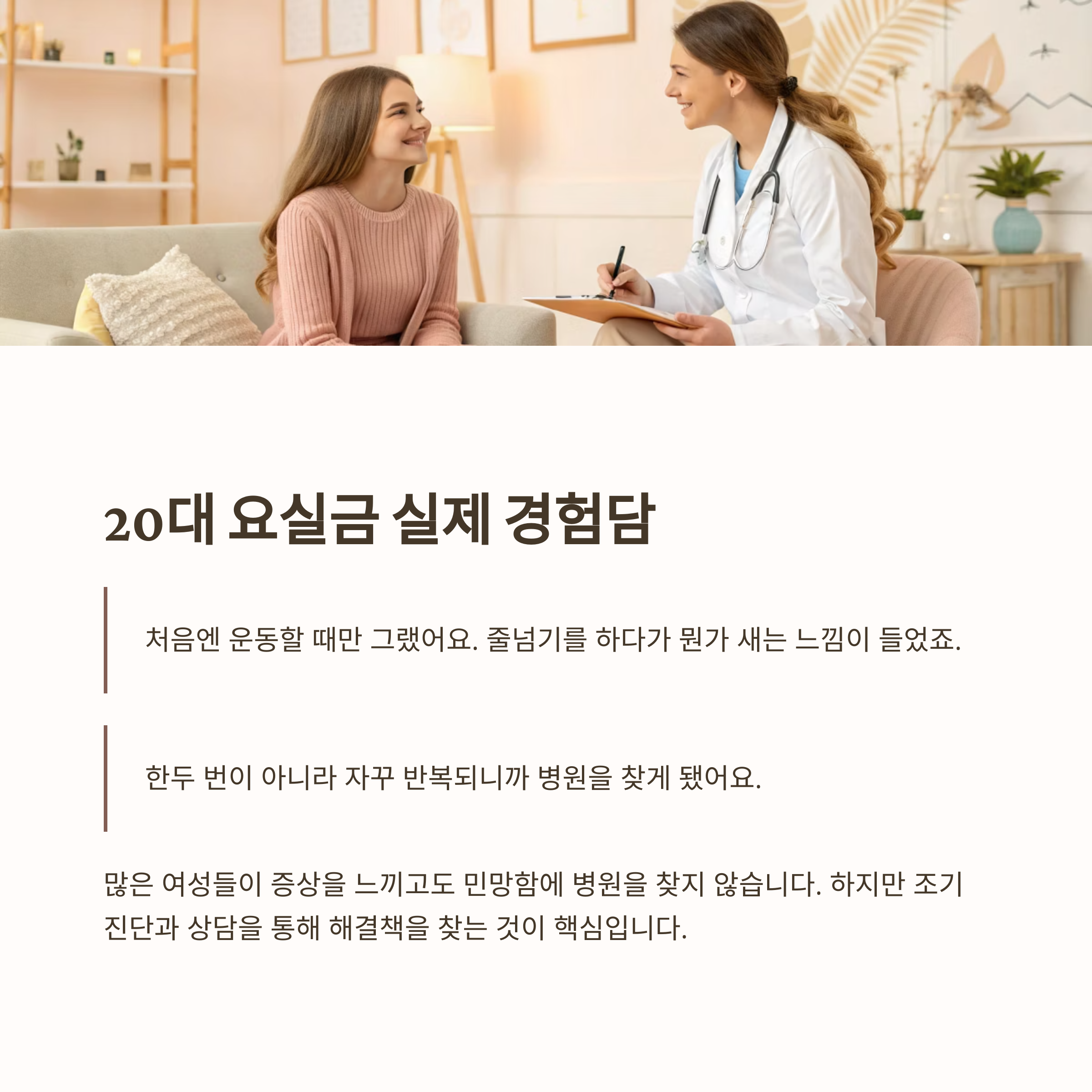 요약하면, 20대 요실금은 조기대응이 핵심입니다