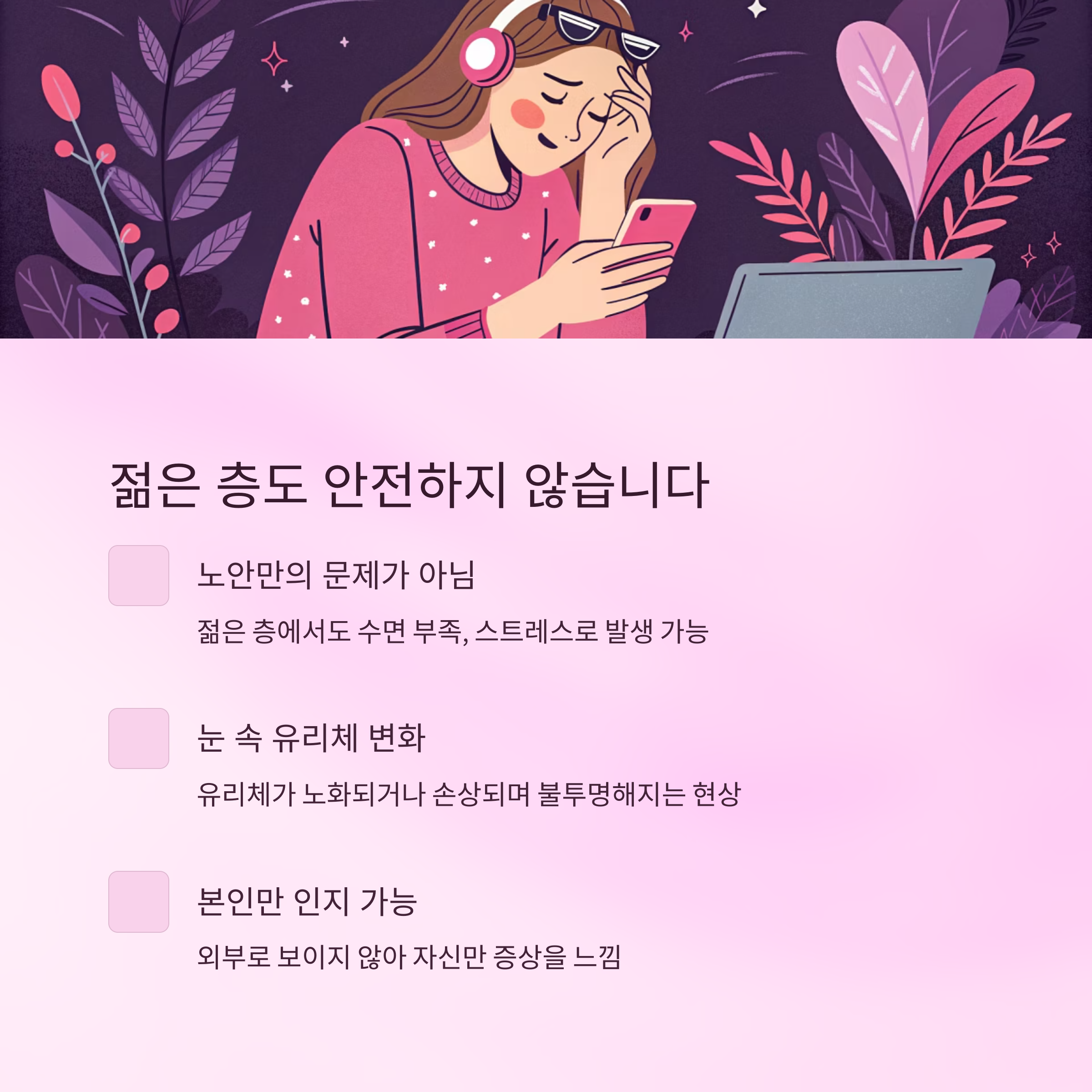 "왜 자고 나면 더 뿌옇고, 이상한 게 보이는 걸까요?"라는 질문을 종종 받습니다.