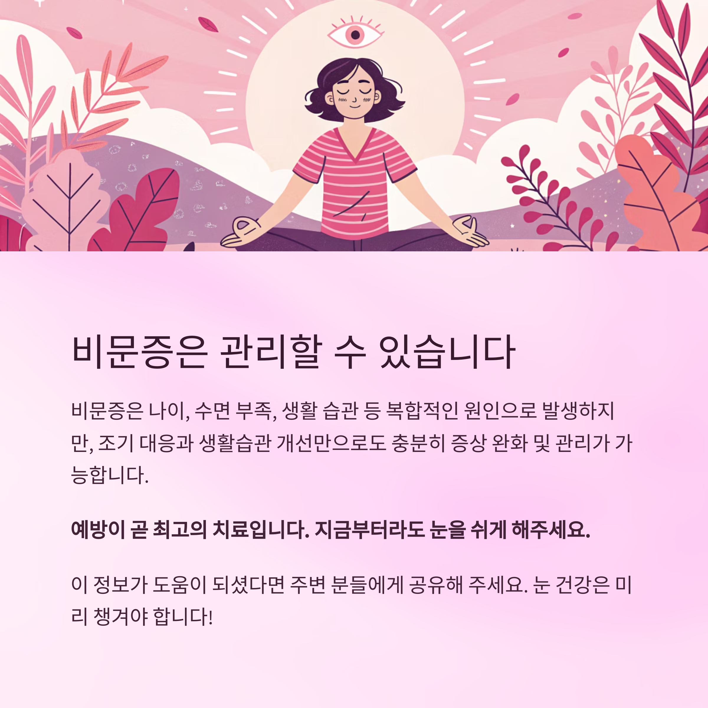 예방이 곧 최고의 치료입니다. 지금부터라도 눈을 쉬게 해주세요.