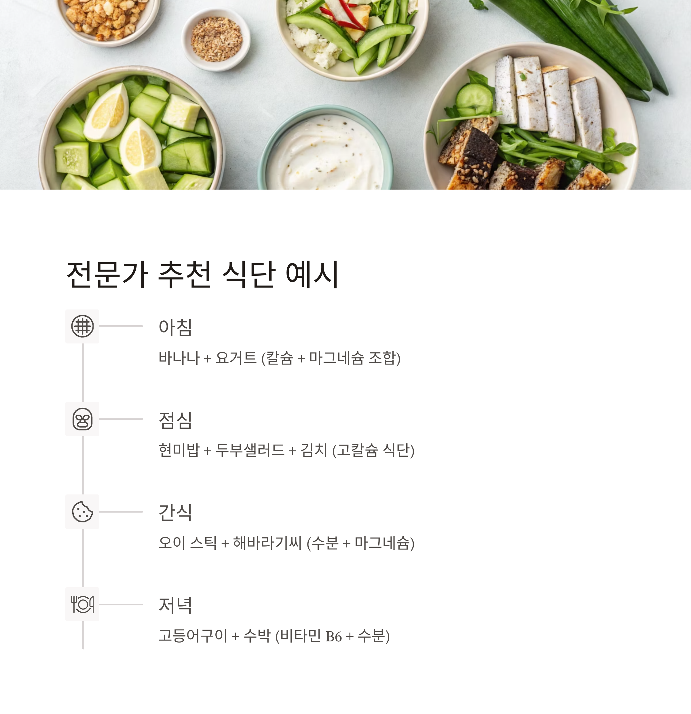 → 두부, 요거트, 바나나 등 보완 식품을 반드시 포함시키세요.