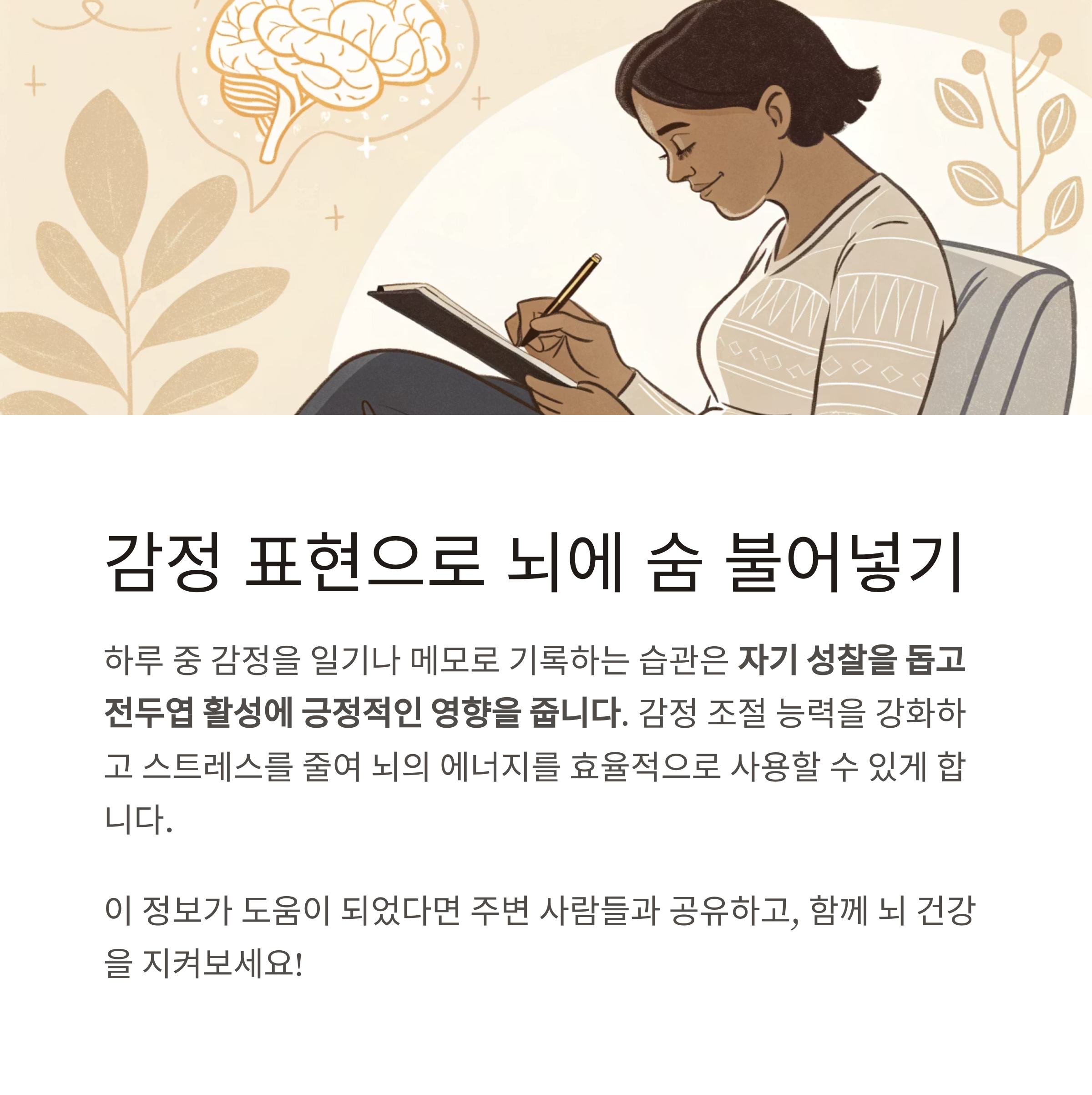 자기 성찰을 돕고 전두엽 활성에 긍정적인 영향을 줍니다.
