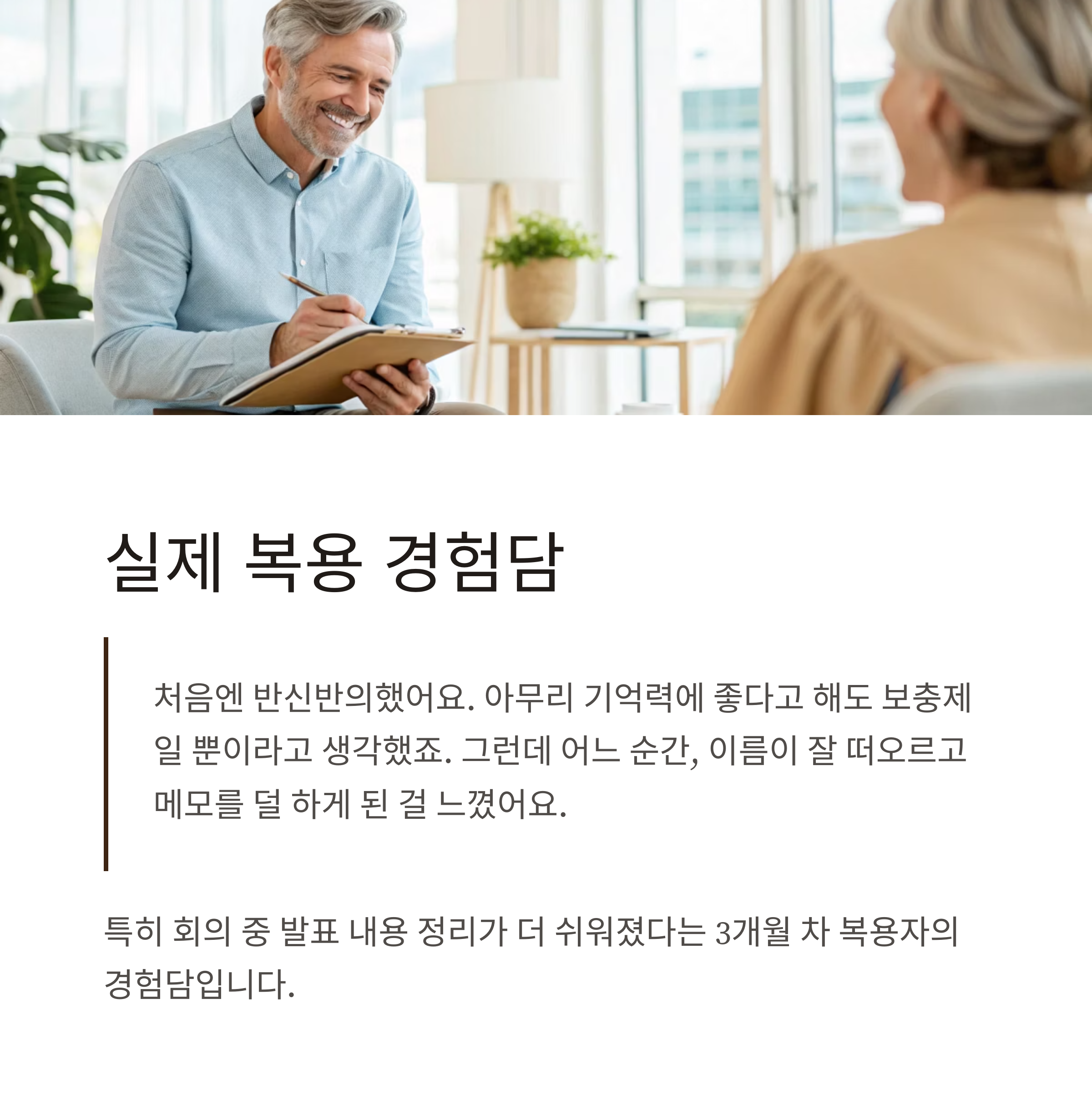 복용 12주 후 기억력 점수가 유의하게 개선된 사례가 보고되었습니다.
