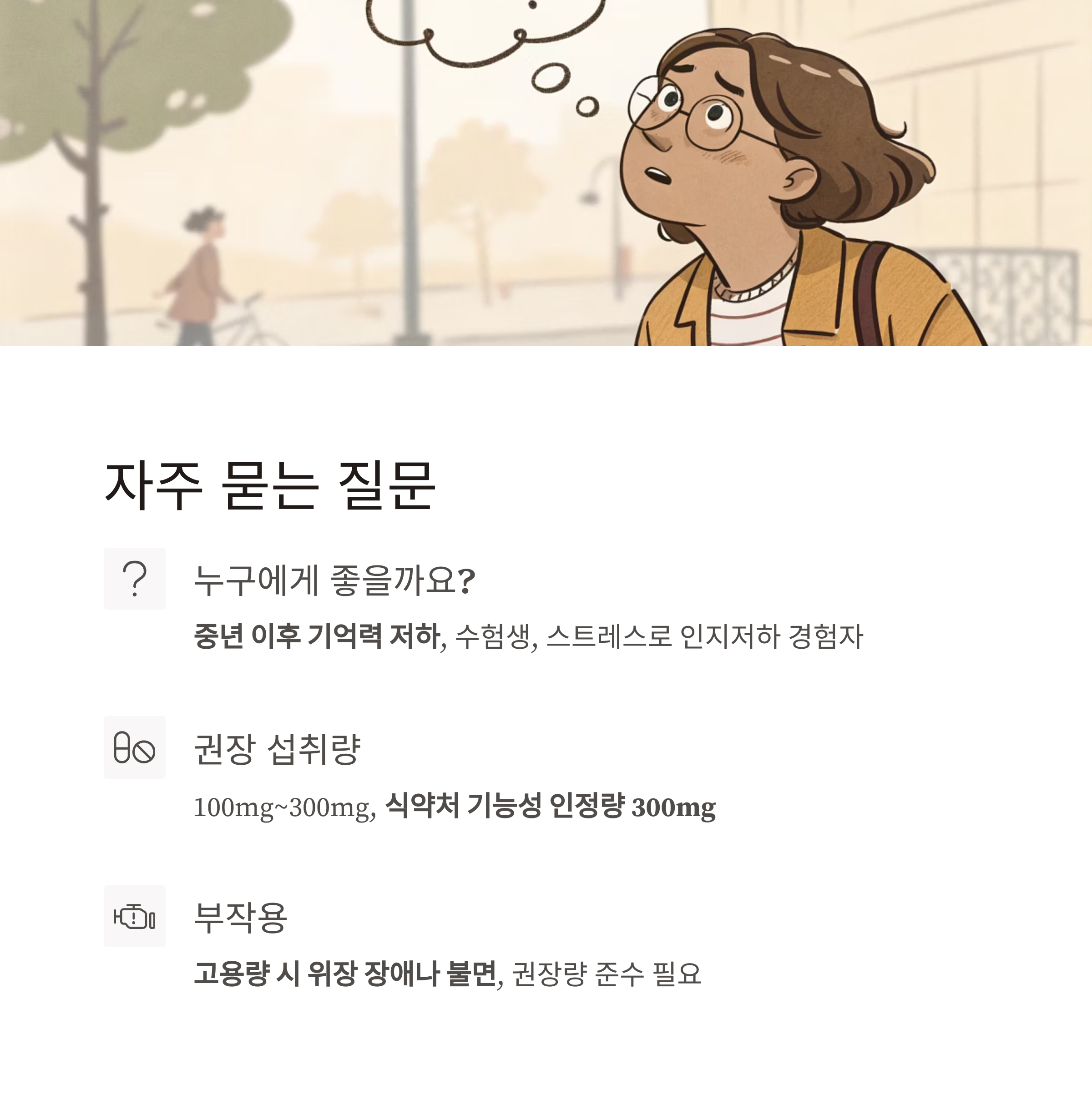 | 복용 대상 | 중장년층, 수험생, 고스트레스 직군 |