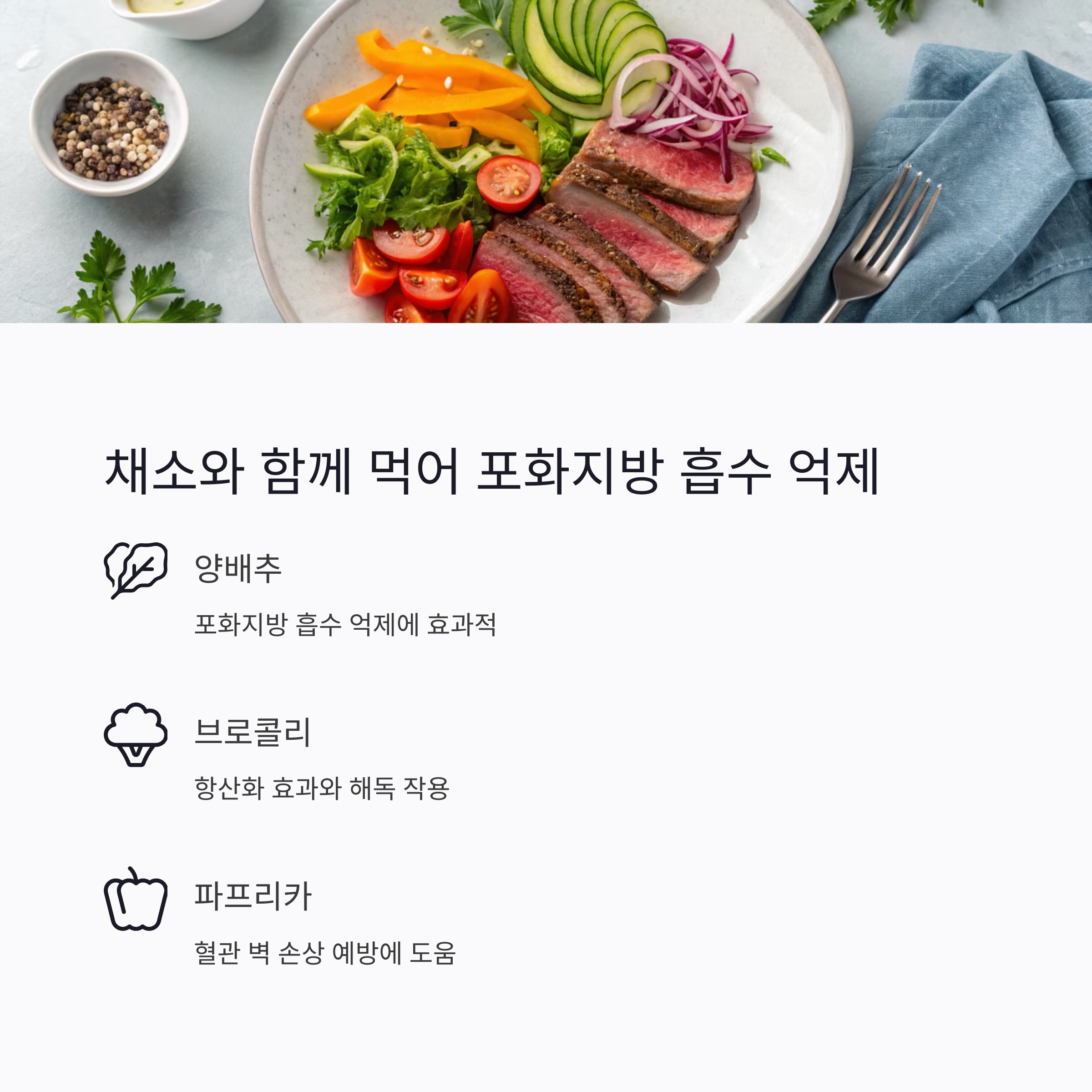 채소와 곁들여 먹으면 포화지방 흡수 억제됩니다
