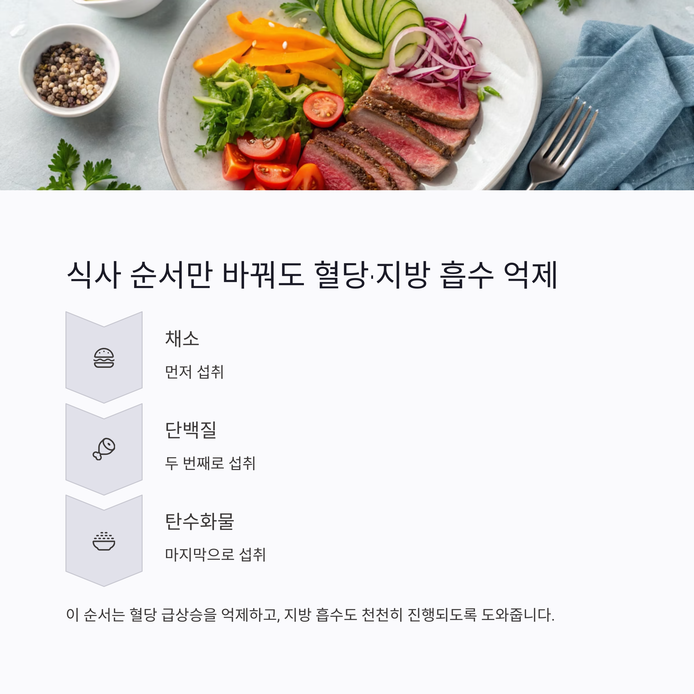 채소→단백질→탄수화물 순서로 먹는 것이 중요합니다