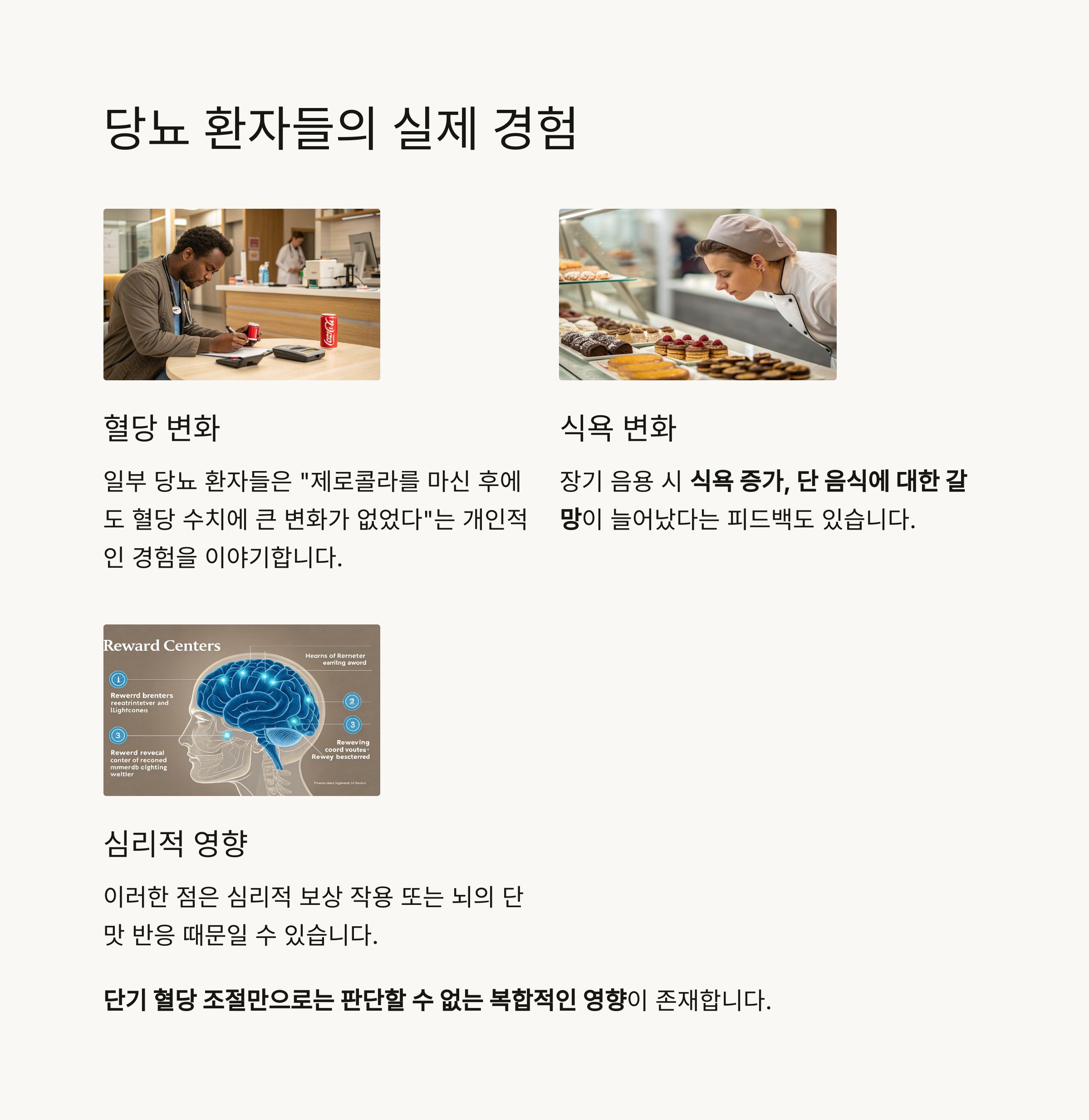 일부 당뇨 환자들은 "제로콜라를 마신 후에도 혈당 수치에 큰 변화가 없었다"는