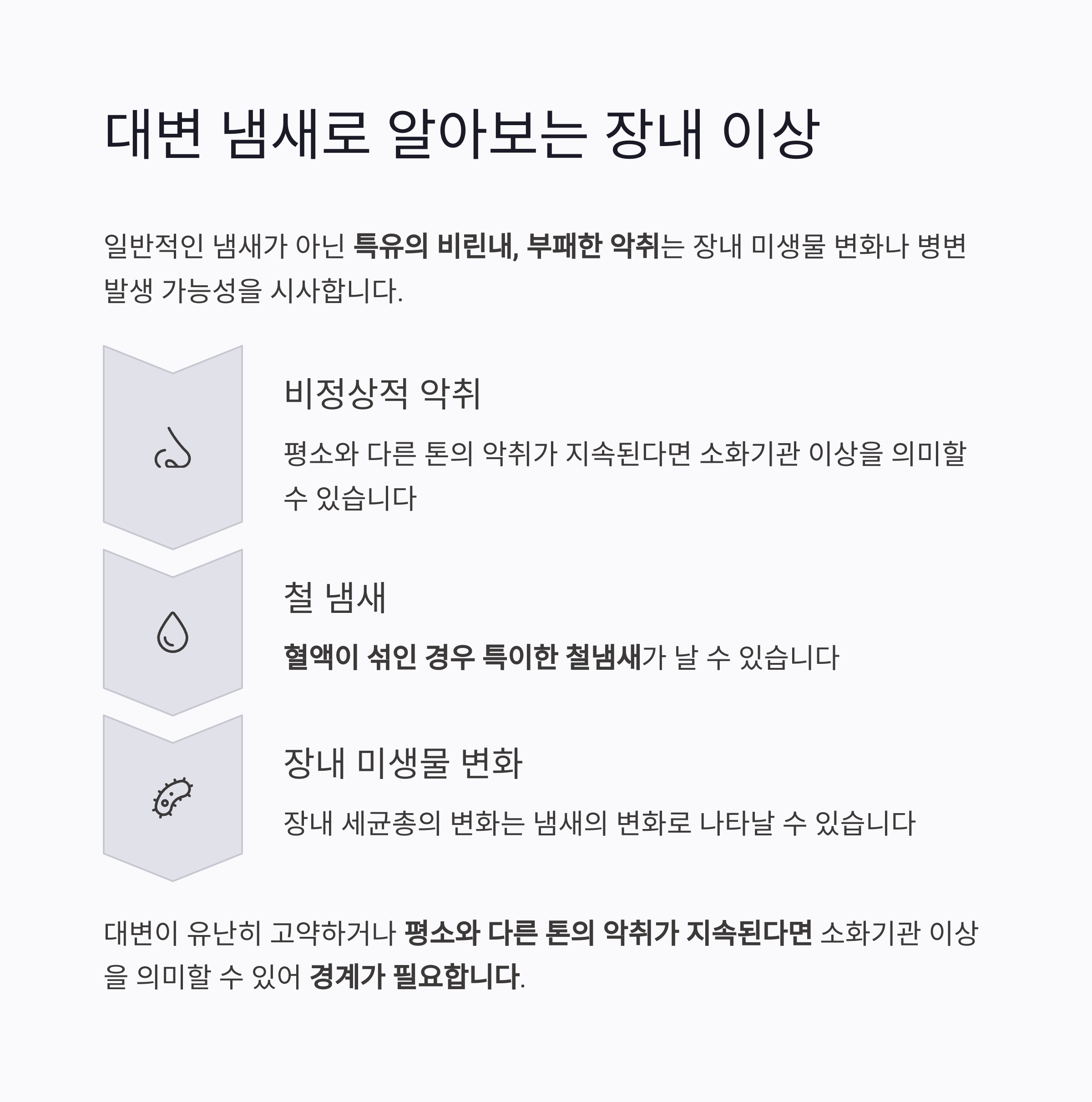대변이 유난히 고약하거나 평소와 다른 톤의 악취가 지속된다면