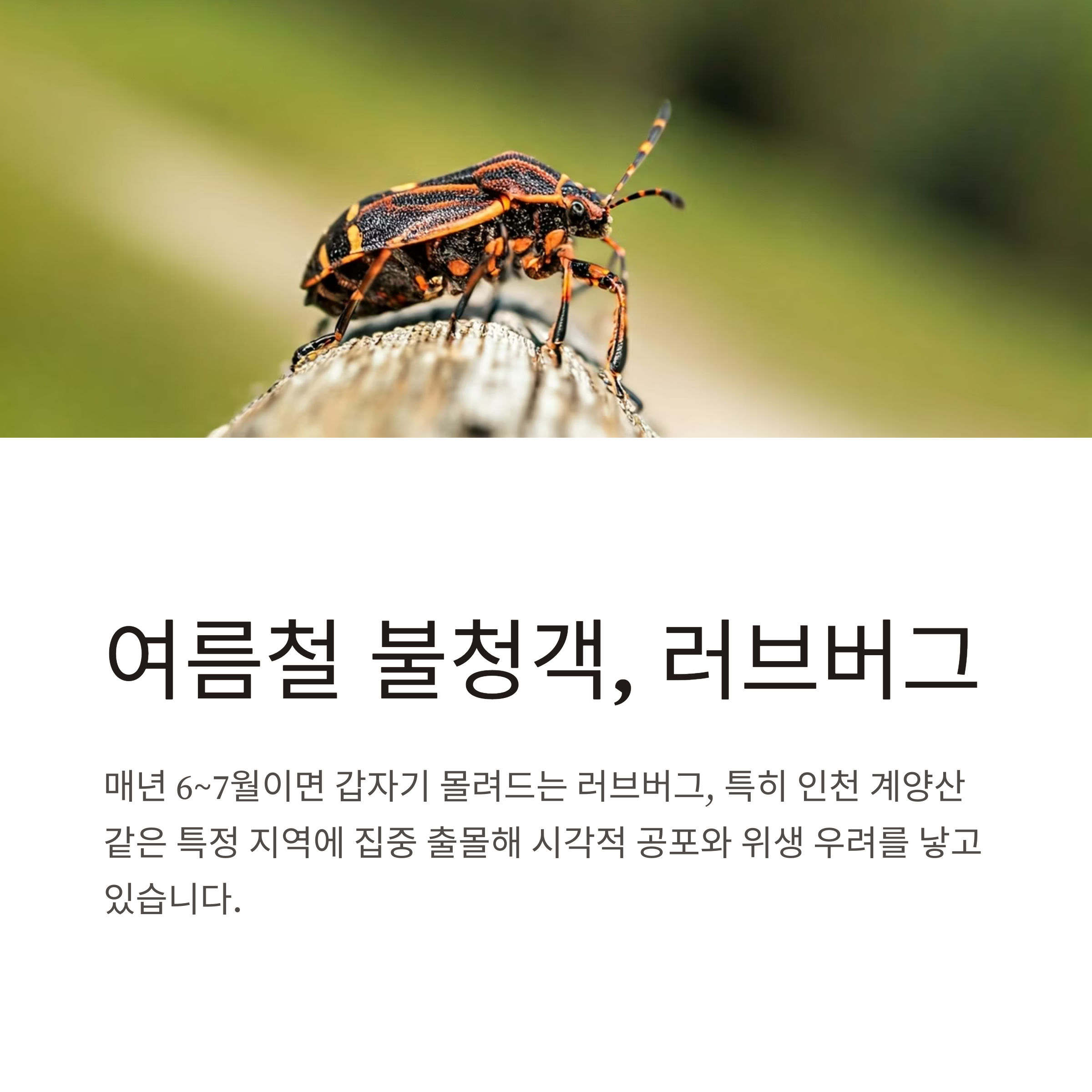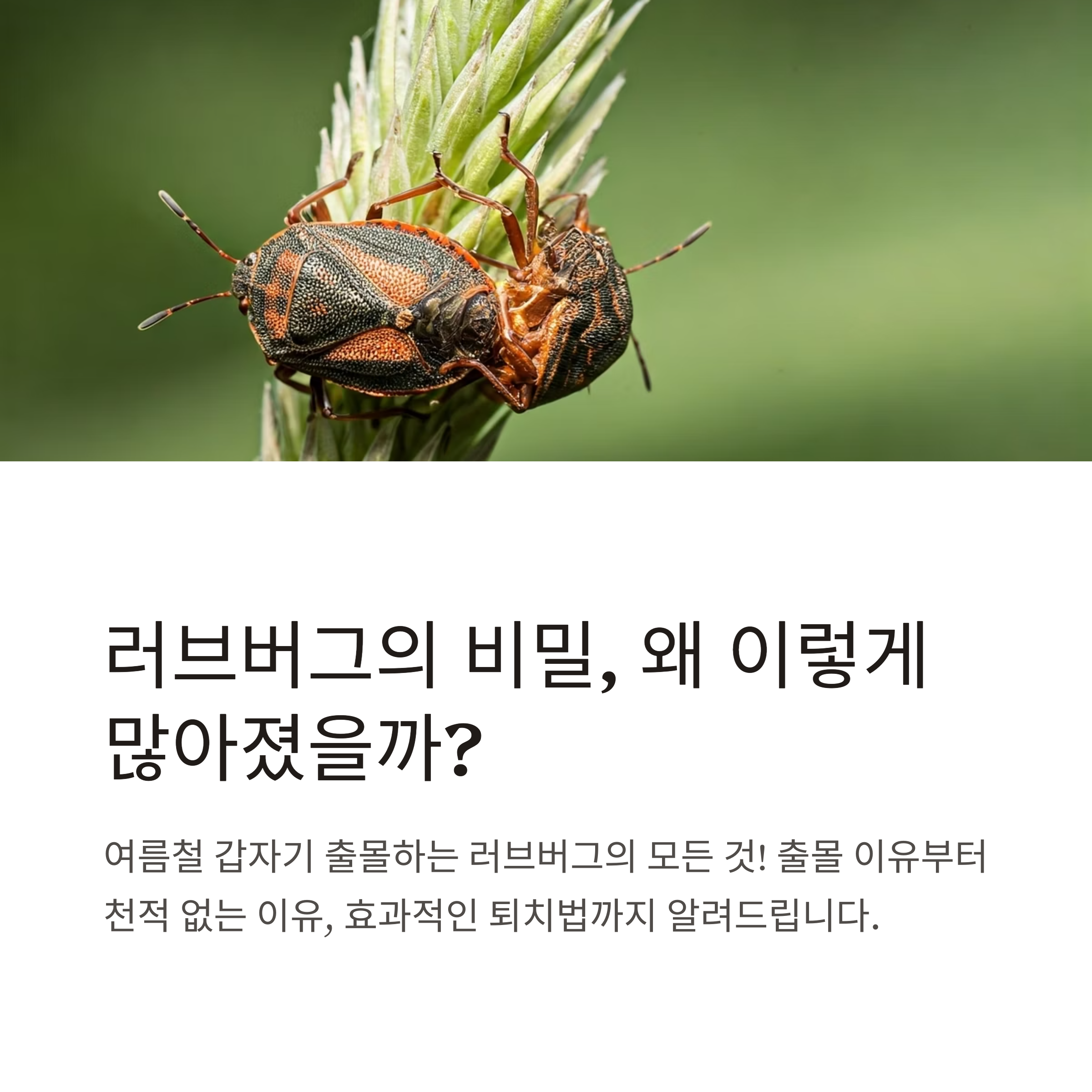 매년 여름이면 갑자기 몰려드는 러브버그 때문에 많은 분들이 불편을 겪고 계십니다. 특히 6~7월이면 인천 계양산처럼 특정 지역에 집중적으로 출몰해 시각적 공포와 위생에 대한 우려까지 낳고 있는데요. 이번 글에서는 러브버그의 정체부터 출몰 시기, 왜 천적이 없는지, 살충제 없이 효과적으로 퇴치하는 방법까지 하나하나 알려드립니다.