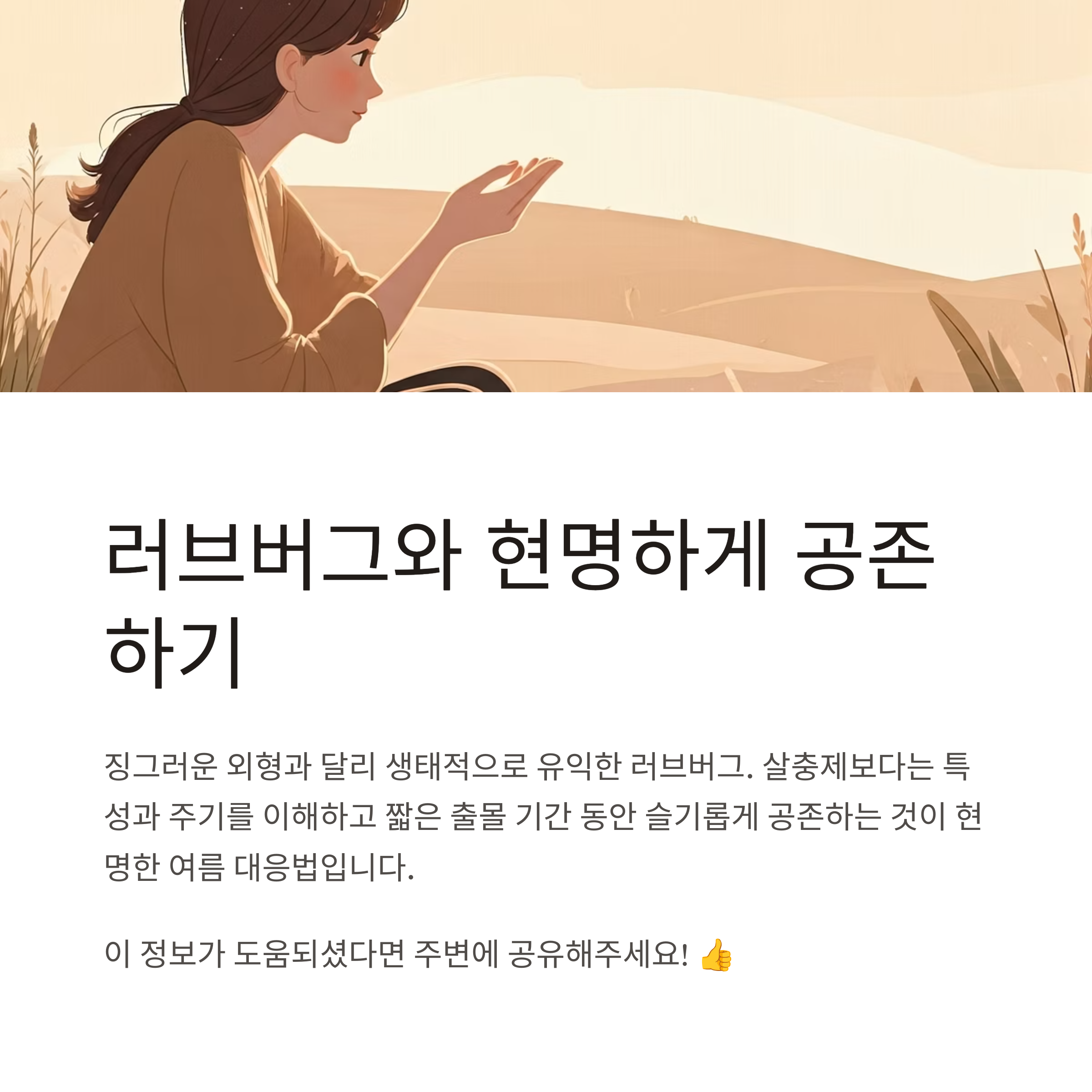 러브버그는 징그러운 외형에 비해 생태적으로 유익한 곤충입니다. 물론 대량 출몰 시 불편은 피할 수 없지만, 이들이 맡은 자연 속 역할 또한 무시할 수 없습니다. 살충제나 방역에 의존하기보다, 이들의 특성과 주기를 이해하고, 짧은 출몰 기간 동안 슬기롭게 공존하는 방법을 택하는 것이 현명한 여름의 대응입니다.