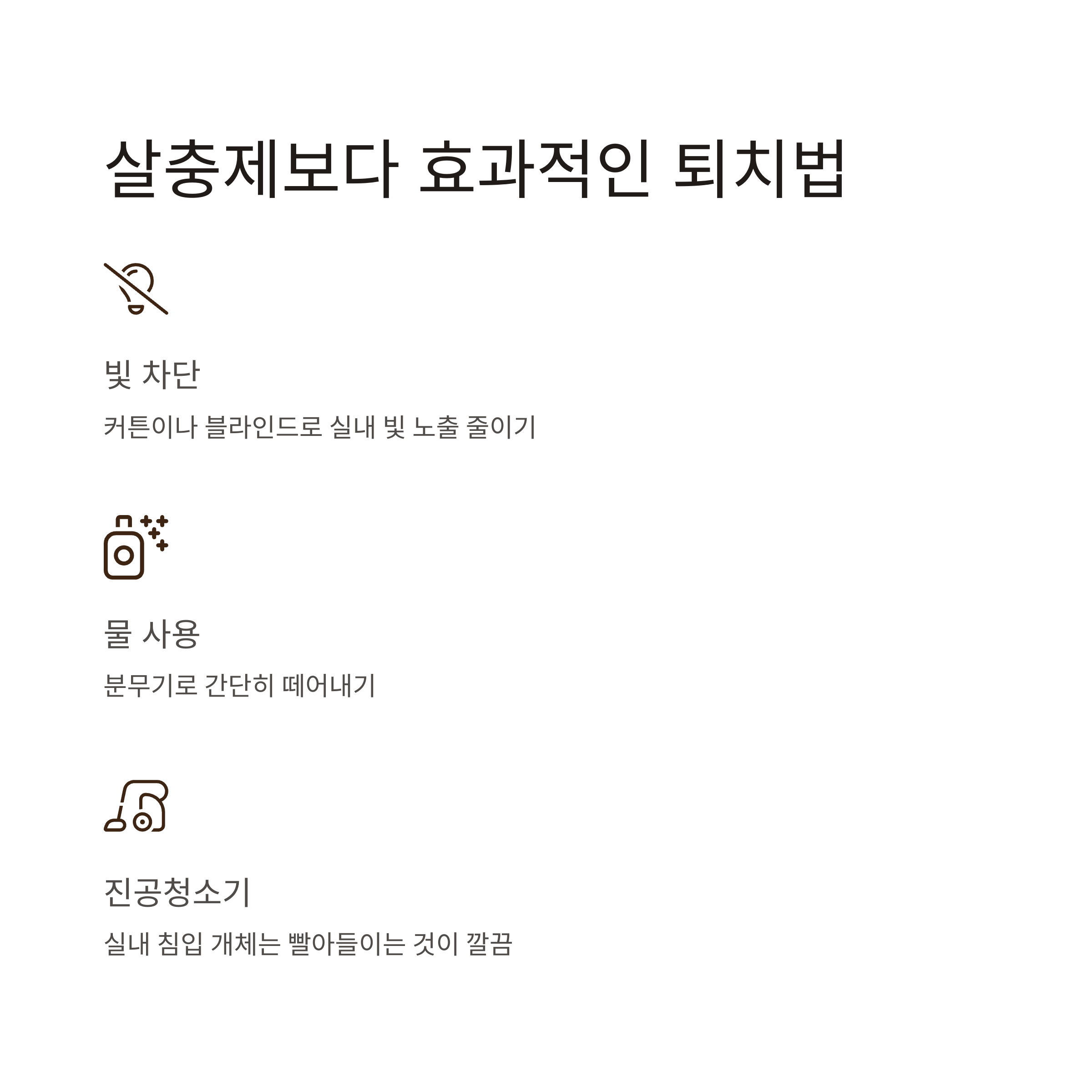 살충제 사용은 꿀벌 등 다른 익충에게도 큰 피해를 줄 수 있어 권장되지 않습니다. 대신 아래 방법을 통해 자연 친화적으로 대응하는 것이 좋습니다.