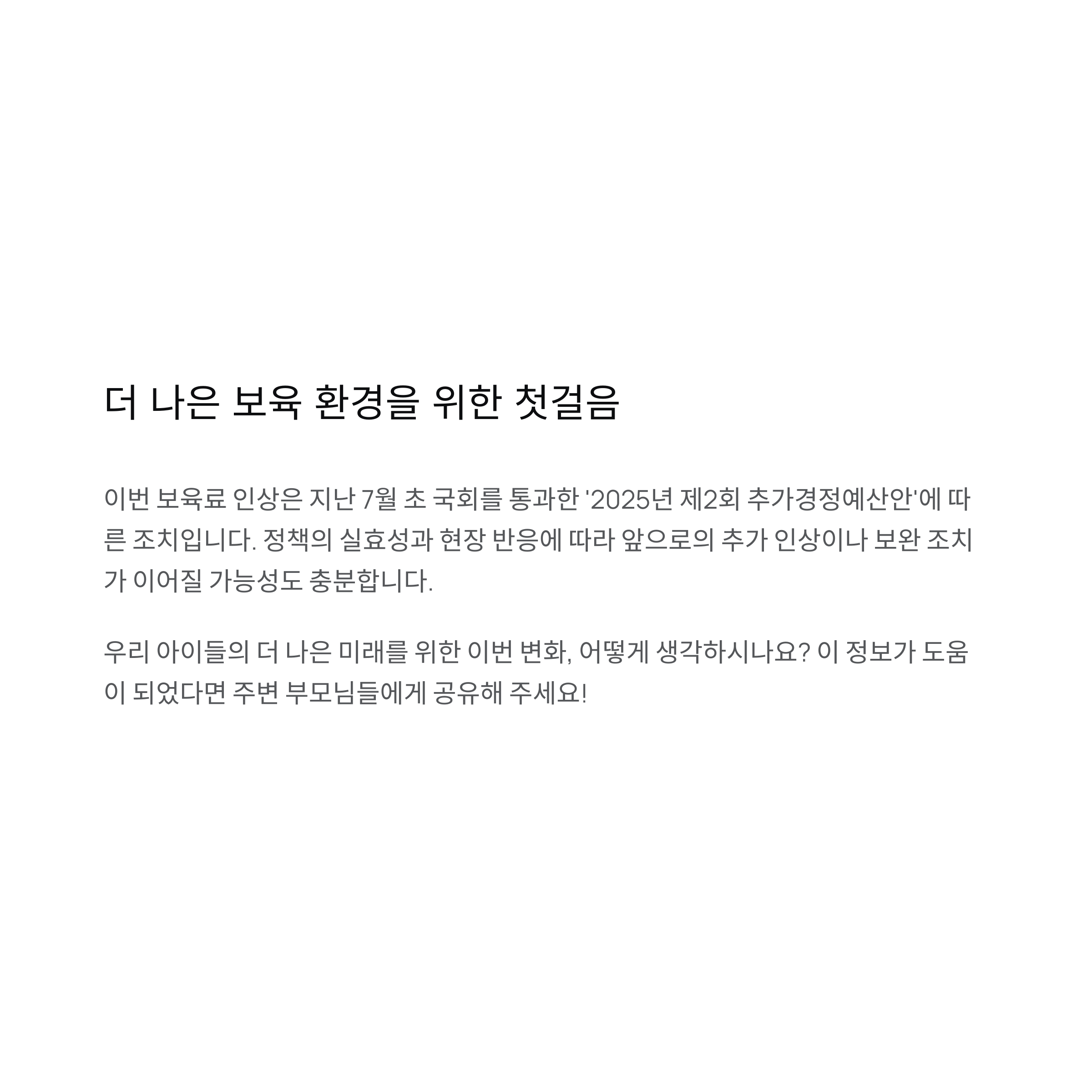 보육료 인상은 단순한 금액 조정보다 더 큰 의미를 지닙니다.