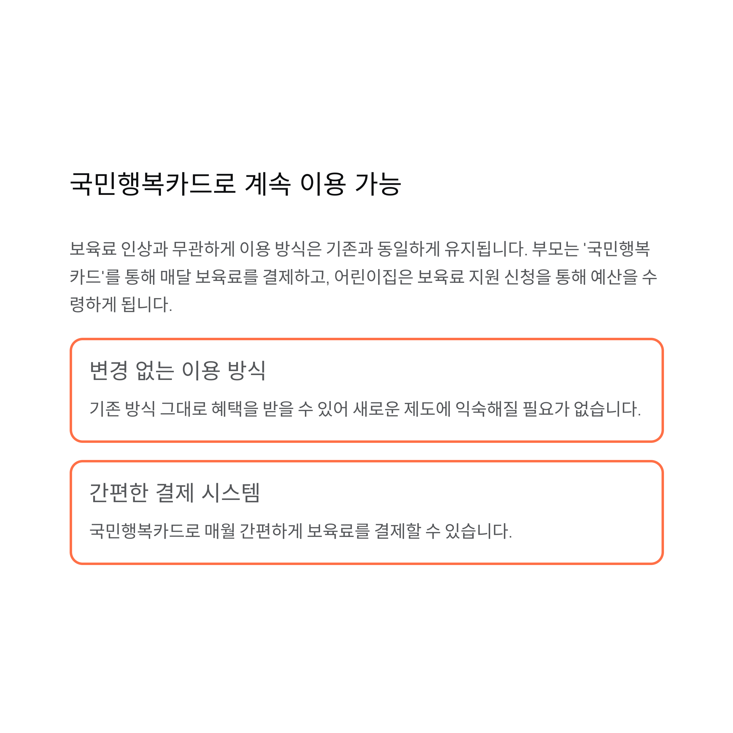보육료 인상과 무관하게 이용 방식은 기존과 동일하게 유지됩니다.