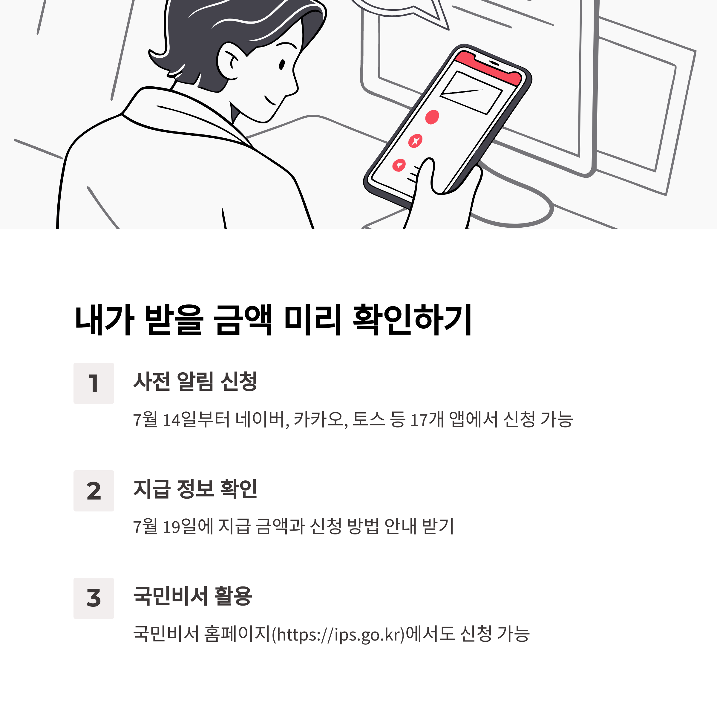 7월 19일에 지급 금액과 신청 방법을 사전에 안내받을 수 있습니다.