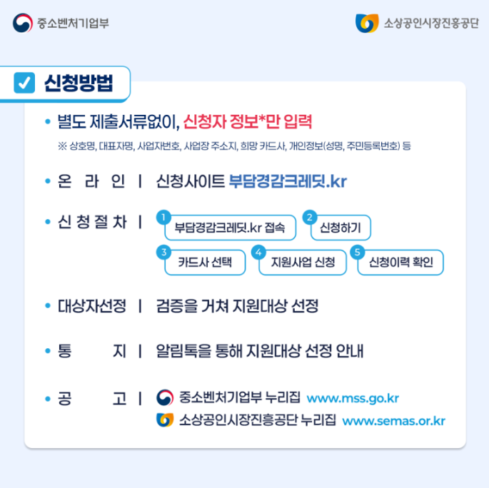 | 신청 방법 | 온라인 신청 (부담경감크레딧.kr) |