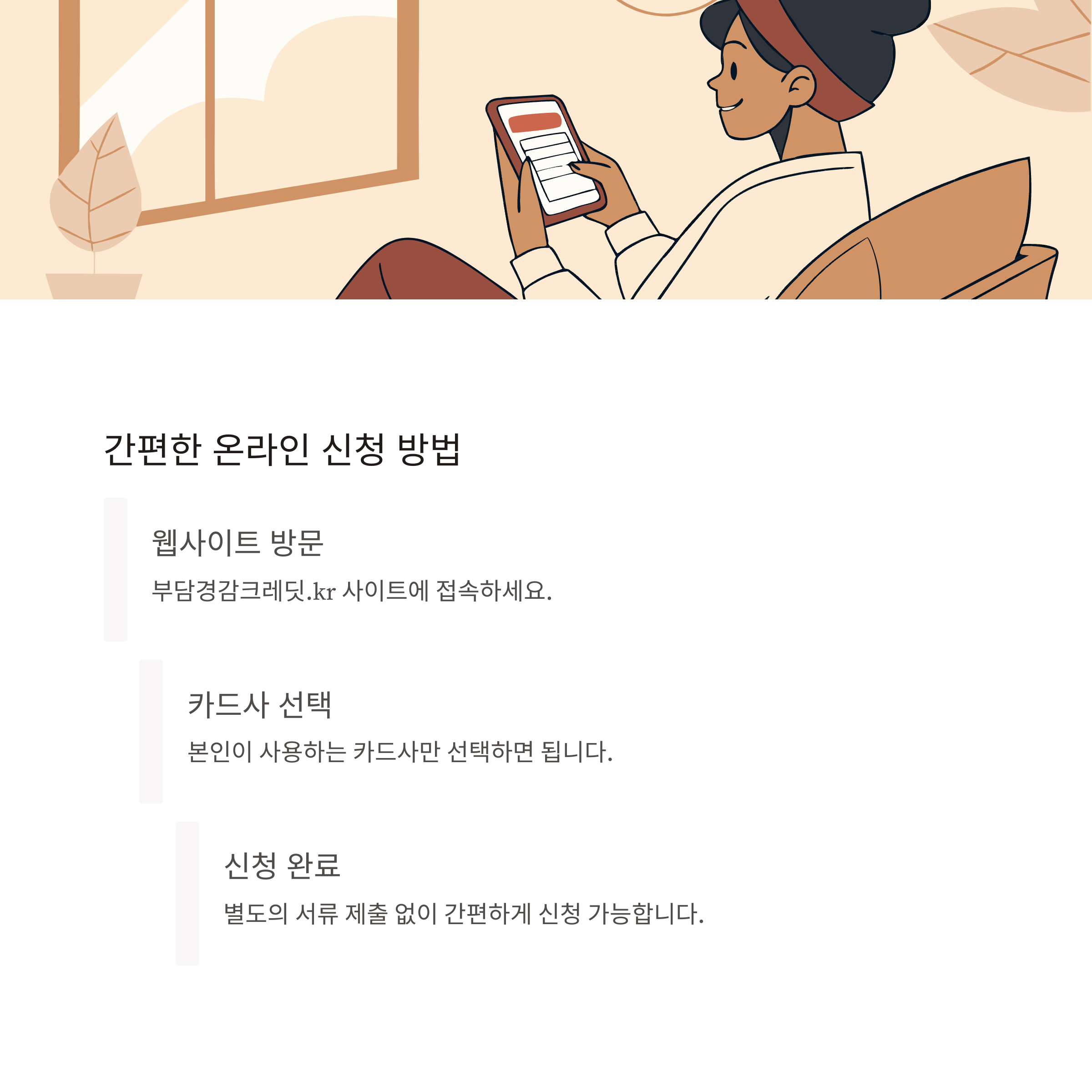 별도의 서류 제출이나 복잡한 절차 없이 본인의 카드사만 선택하면