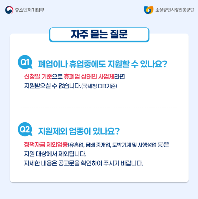 소상공인 기준에 해당하는 사업자라면 누구나 신청 가능하며,